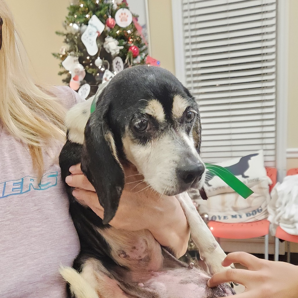 Baylee is a 10-year-old beagle who came to us from a hoarding situation in Hall County. When she arrived, she had a massive inguinal hernia the size of a bowling ball that contained her intestines and bladder. She went straight into foster care and had surgery to repair the hernia and tuck everything safely back inside her tiny body. Despite everything she went through, Baylee never slowed down. She moved around like nothing was wrong and has been thriving ever since. She’s now fully healed and ready for her forever home. Baylee is blossoming in foster care and coming out of her shell more every day. She loves her foster family and dog siblings, enjoys walks and exploring grassy yards, and has discovered the joy of toys. She’s learning potty training and has been accident-free overnight. She’s a cuddly little love bug who enjoys car rides, pup cups, soft blankets, and quiet nights on the couch. She doesn’t bark much, but she does have an adorable little howl when her food is being prepared. Baylee would do best in a calm, loving home where she can be included in everyday life and get plenty of snuggles. She’s small but mighty - and she’s pure joy. Baylee weighs about 15 pounds and is estimated to be about ten years old (est. birthdate 12/20/2015). Baylee is spayed, microchipped, and up to date on vaccinations and preventatives. Her adoption fee is $185. If you'd like to know more about this beautiful, loving girl, please apply at www.shelterluv.com/matchme/adopt/FKDS/Dog, and a team member will reach out in the following days to set up a time to meet her in person.