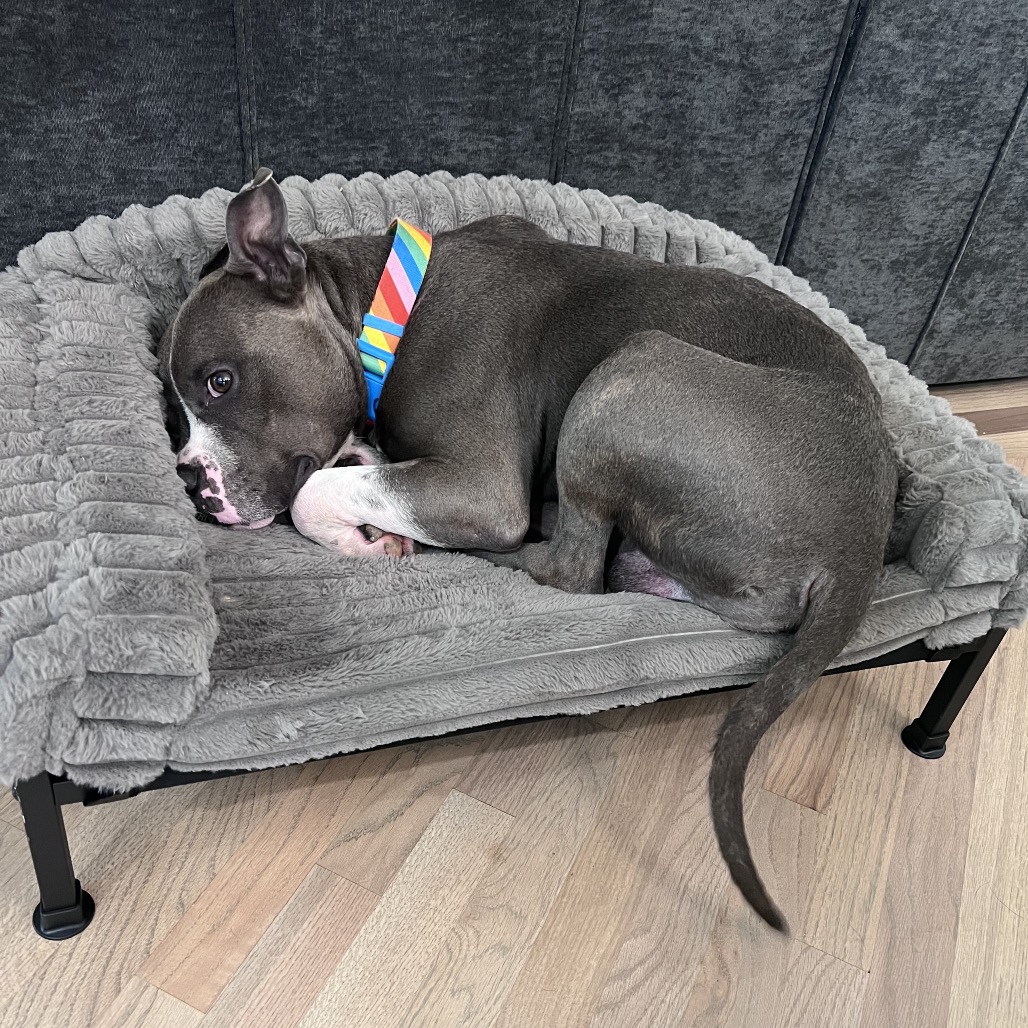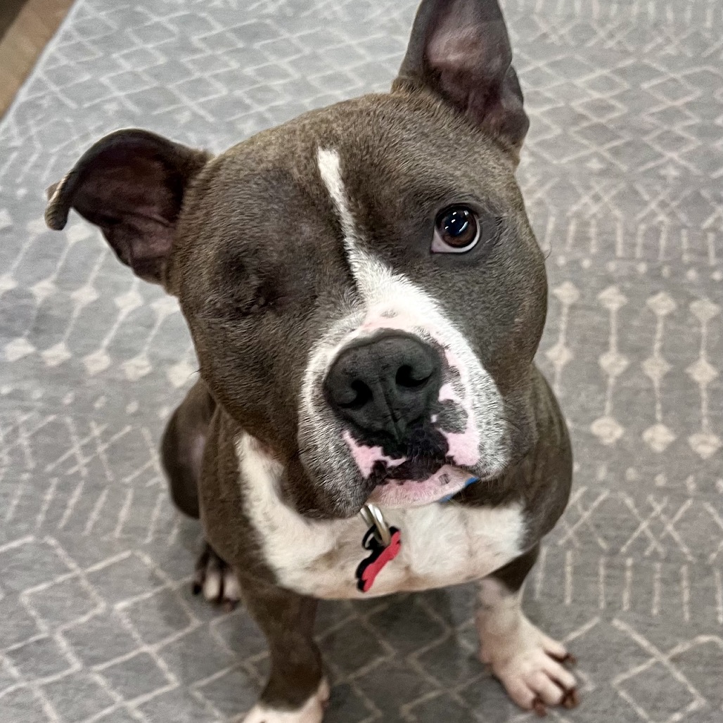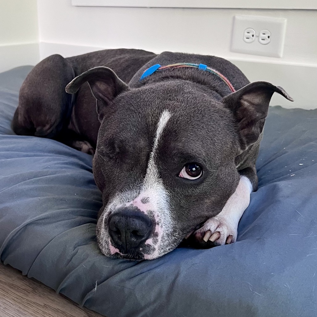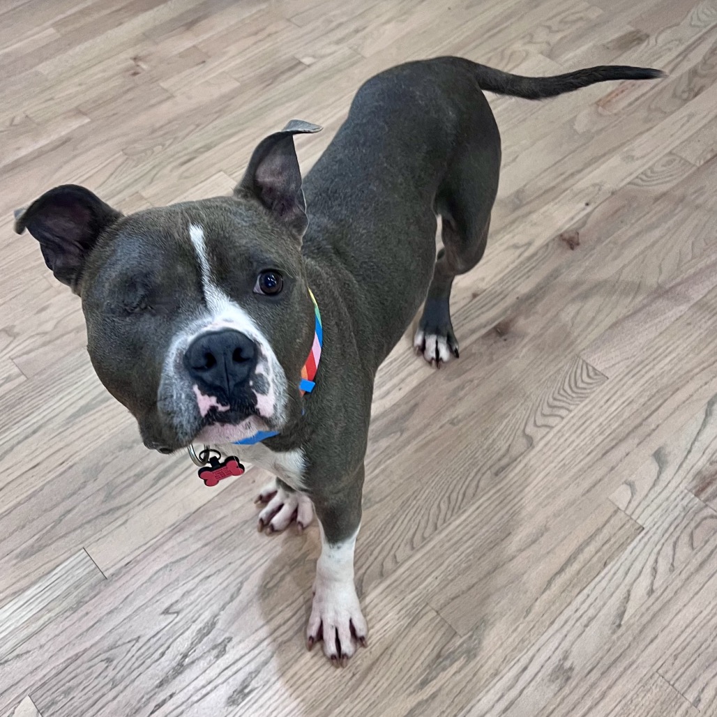 Don’t let his sad story fool you — Bernard is one happy pup with an even happier heart! This boy is the definition of a Velcro dog — wherever you are, that’s exactly where he wants to be. Bernard is a professional cuddler, an expert in full-body hugs, and a master at making humans feel loved. His sweet spirit carried him through some tough times: when rescued he was terribly underweight and so dehydrated that one of his eyes was damaged beyond repair. But none of that dimmed his light! Bernard’s joyful, affectionate personality shines brighter than ever. He absolutely adores people and gets along great with other dogs, he’d enjoy a canine companion but would be equally thrilled to have all the snuggles to himself. At about 45 pounds, Bernard is housebroken, crate trained, and the perfect mix of playful explorer and couch companion. His favorite activities include cuddling, exploring the yard, cuddling, chewing on his toys, and - you guessed it - cuddling! Bernard weighs 45lbs and is approximately 6 years old (est. birth date 08/20/2019). Bernard has been neutered, is up to date on all vaccinations & preventatives, and is microchipped. Bernrd's adoption fee is $315. If you want more information about Bernard, please submit a survey at https://www.shelterluv.com/matchme/adopt/FKDS/Dog. At this time, meeting our dogs is by appointment only. After submitting a survey, an adoption counselor will contact you to give you more information about the dog you are interested in adopting and to arrange for you to meet. Must be at least 21 years of age to adopt.