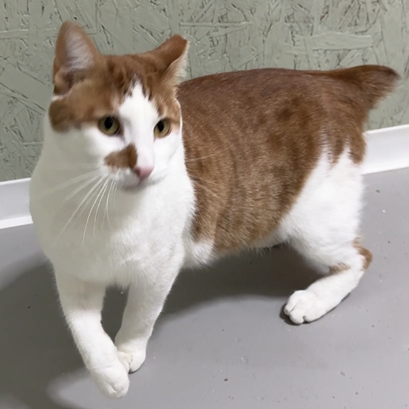 Bobbie is a high-energy orange Manx boy looking for his forever family. He’s playful, curious, and happiest when he has plenty of toys and someone to engage with him so his days are full and fun. He especially loves laser pointers and string toys, and a cat playmate would be ideal. With a proper introduction, he could be happy living in a home with a dog. If you’re looking for an active, entertaining companion who keeps life lively, Bobbie would be the perfect match.