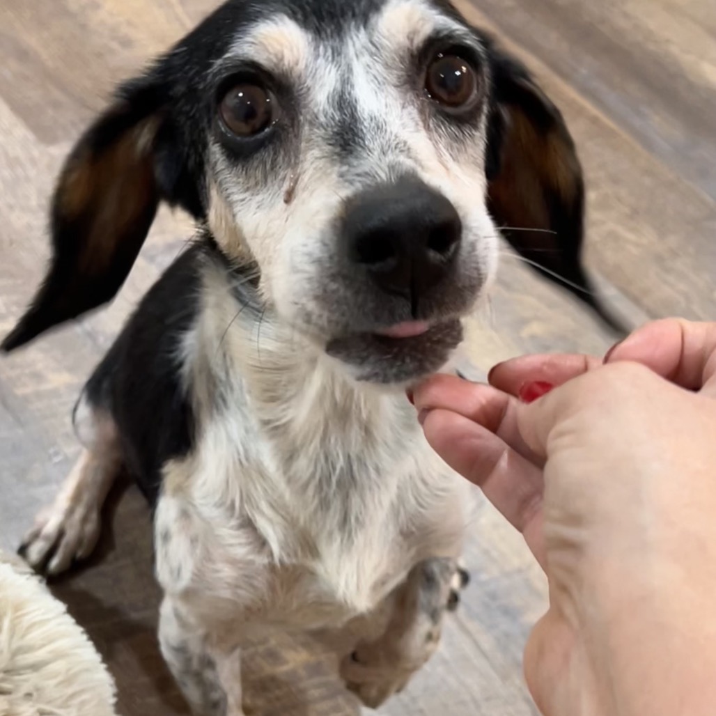 Bonnie is a very gentle and sweet 12 year old Beagle that has been rescued from a lifetime of abuse and neglect. Even though she has suffered a very rough life she is just the sweetest, most gentle soul. She is currently in foster care. Her foster is working with her on crate training and is doing well if she is taken out often throughout the day. She is doing well learning to walk on a leash and is good at walking alongside her foster. She is very food motivated and with some patience and training she will be a great companion. She really does best around her foster family and doesn’t like being alone in her crate. She is very easy going and loves attention and being pet.