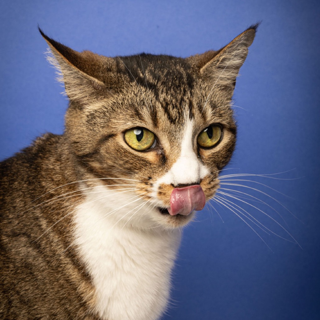 Meet Boots! Boots is a charming senior tabby with a touch of white on her nose and a heart full of love. She is bonded to her sister and soul mate, Gin Gin, so they must be adopted together. Outgoing and friendly, Boots is the ultimate social butterfly—she’ll be the first to greet you at the door and happily follow you around the room. She loves to chat with her sweet meow and enjoys the company of both people and other cats. A true treat enthusiast, Boots will steal your heart with her affectionate personality and playful spirit. Could you be the perfect one for Boots and Gin Gin, a loving duo looking for a place to call their own during their twilight years?