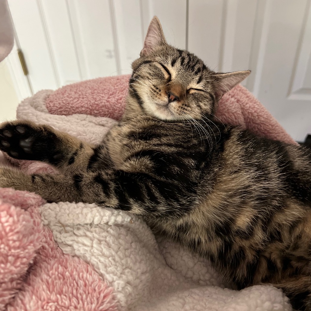 I'm an extremely sweet girl who will greet you with a loud purr and happy eyes. Once I'm bonded with you, I love cuddling on your lap and will fall all over myself to get petted. I'm also playful--I adore fishing rod toys and will turn into a little dynamo, keeping us both entertained with my antics! My foster mom says my personality is like a ray of sunshine, so please take me home if you're looking for a fun and loving companion who will make you smile every day.