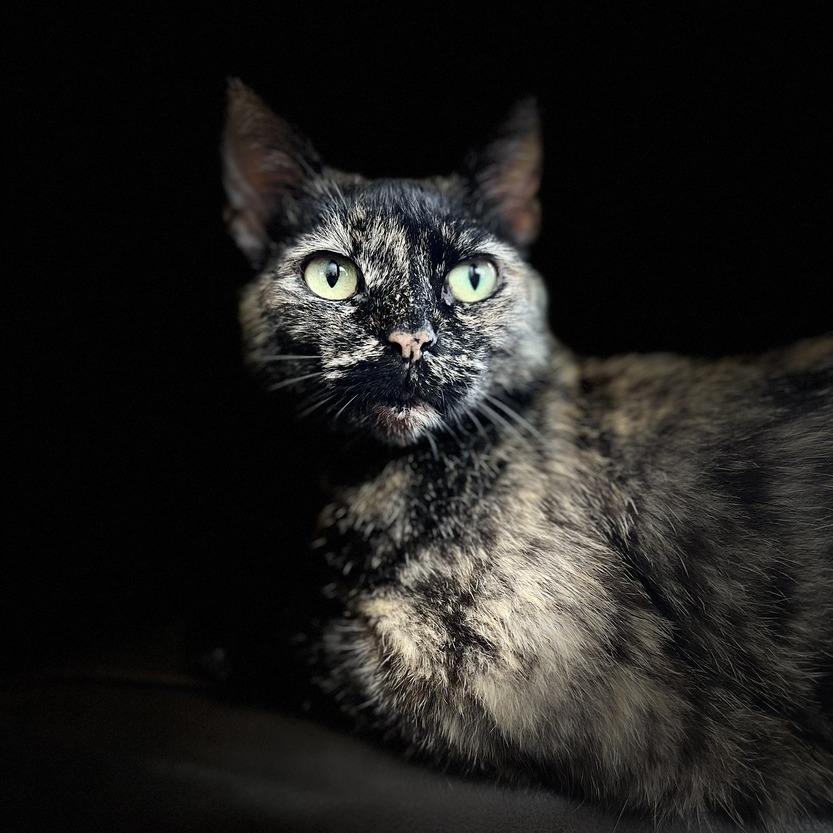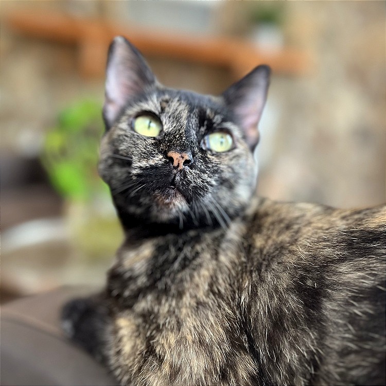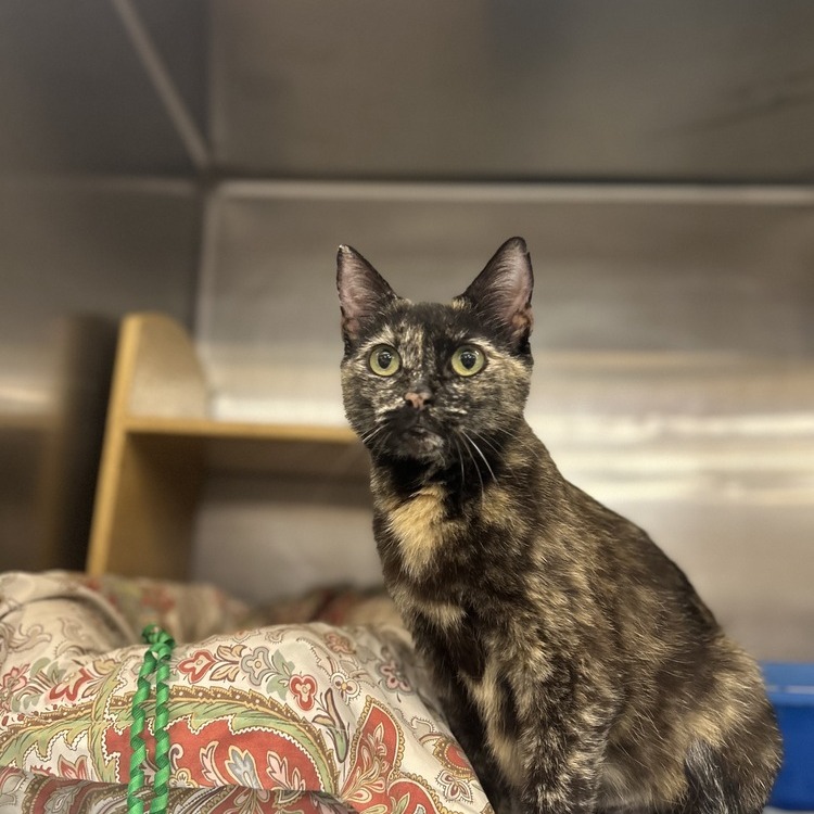 Bryn is shy but a very friendly cat who enjoys the finer things in life (food, sun and sleep).  You will often find her lounging around or asking to be pet. She show s a slight interst in wand toys but takes time to warm up.  She is looking for a home that will spoil her with attention. She hasn't quite picked her favorite toys yet, but she's perfectly happy lounging by a sunny window and watching the world go by. Byrn is also very well-behaved — she hasn't scratched up any furniture or caused any trouble. She's food-motivated, loves attention, and will happily sit with you for as long as you're willing to keep petting her.
