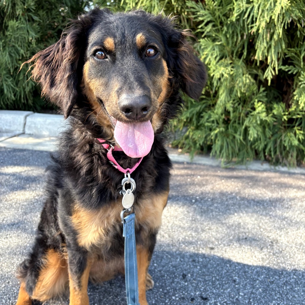 This 1 year old, 43-pound curly-coated retriever mix is bursting with enthusiasm for life and ready to join in on any adventure. Whether it’s a game of fetch, a long walk, or a road trip, Bubbles is always up for fun — she rides beautifully in the car and loves everyone she meets. She’ll even try to climb into your lap like the oversized lapdog she thinks she is!