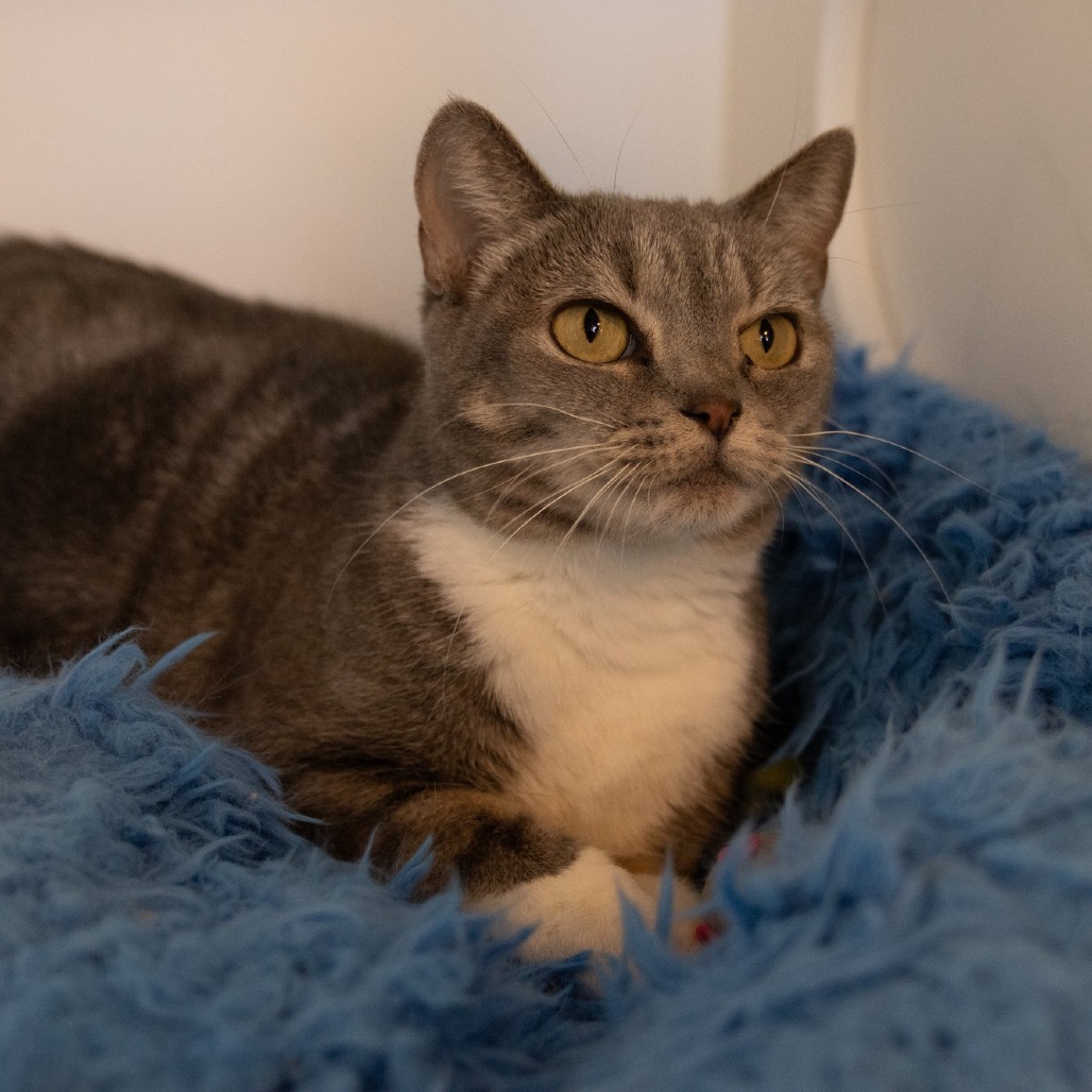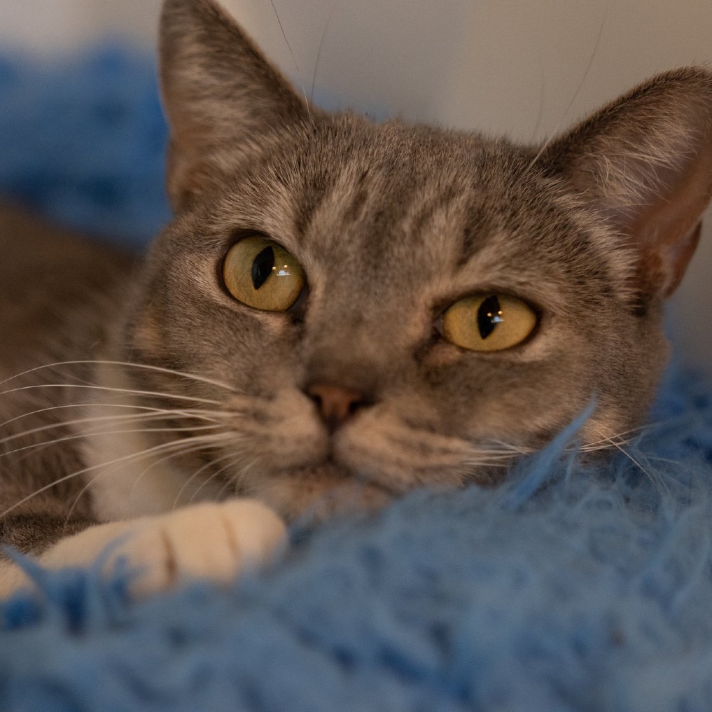 Hi! My name is Dolores 2, a reference to the Virgin Mary. I enjoy my own company and often curl up in quiet corners, observing the world with my expressive eyes. A gentle chin rub will start my purring motor! I love relaxing with cat music and TV. The moving squirrels and birds are the best! If you're an introverted, loving, and patient person, we could get along really well. Imagine me becoming a cuddly soft cloud by your side!