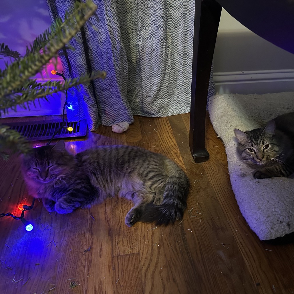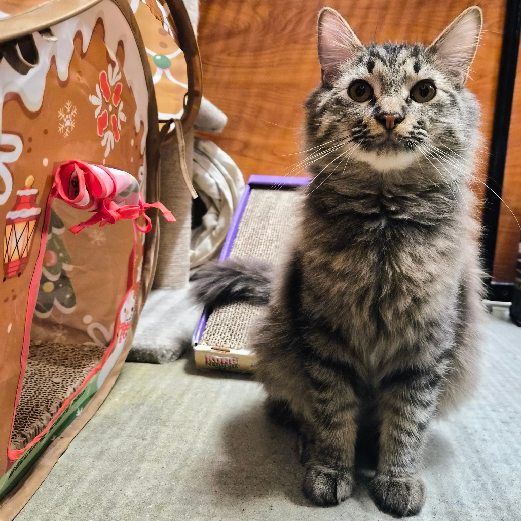 Coffee absolutely loves to play with the plastic balls, he will bat and chase them all over the house. He has a beautiful fluffy coat and loves to be pet. He is good with dogs and other cats. His favorite food is fillets in gravy. He is bonded with Toffee and never lets her get too far out of sight.