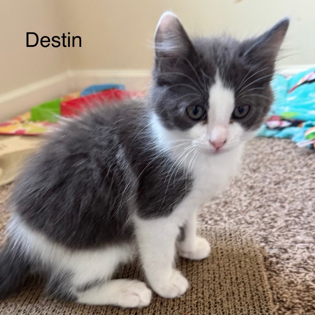Destin is an endlessly playful little spirit who can turn anything—balls, ribbons, or even a simple string—into his next great adventure. He's always ready to pounce, chase, and zoom around with boundless enthusiasm. While he'll pause for a brief, sweet cuddle to recharge, he's quickly back on his paws and off to play again, eager for his next bit of fun.