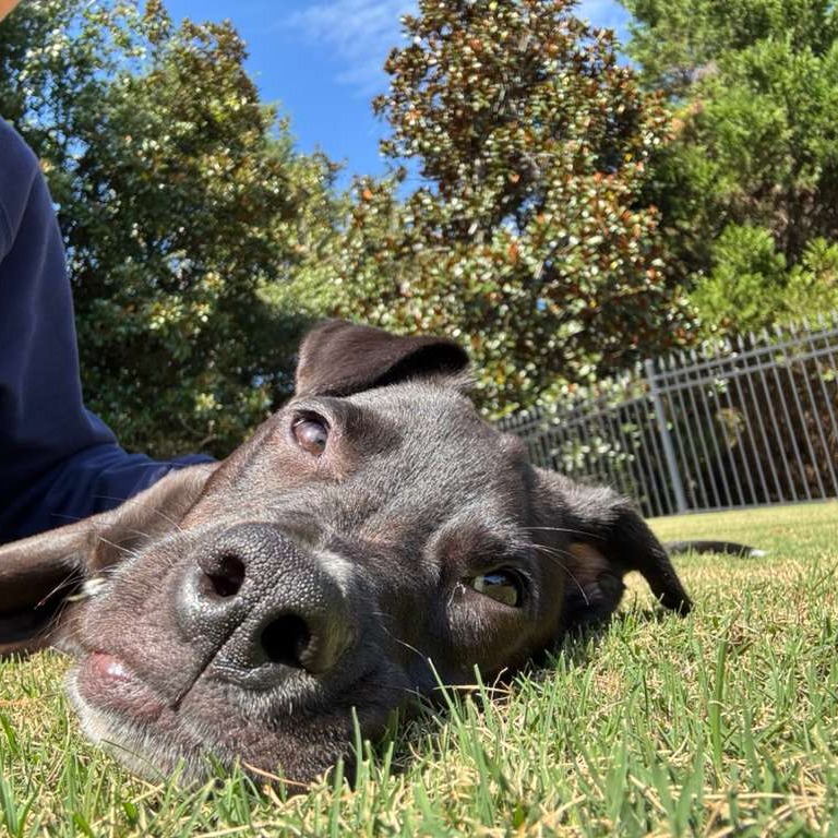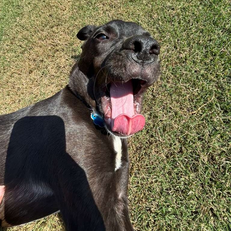 Elvis came to us as a stray and has made an incredible recovery from some skin issues. He also has a uniquely shaped front leg — likely something he was born with — but it doesn’t slow him down or cause any discomfort. In fact, it just adds to his charm and gives him a signature walk that everyone loves!