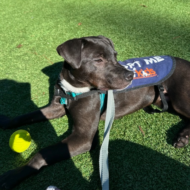 This handsome boy gets along wonderfully with other dogs and enjoys having playmates. He’s gentle, playful, and has a moderate energy level that makes him a great fit for many types of homes. Elvis is also a volunteer favorite on walks — he’s very sweet on leash, soaks up attention, and greets everyone like an old friend.