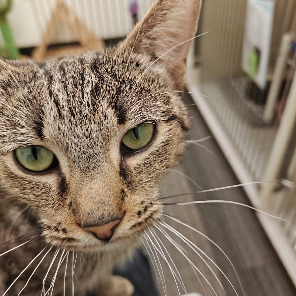 Erika is a small girl with a lot of love to give. She’s content to curl up next to you all day long, but she has an independent personality that she’s not afraid to let shine through. She came into Furkids from the street, pregnant with 9 babies, giving them everything she had. She successfully gave birth to 8 beautiful kittens, losing one to the trials of her labor. Despite her rough life thus far, Erika was a loving mother and accepted the love from her human caretakers just as much. She is headstrong, talkative, and sugary-sweet. Erika would be the happiest cat in the world to be your companion if you give her a chance (and a treat)!