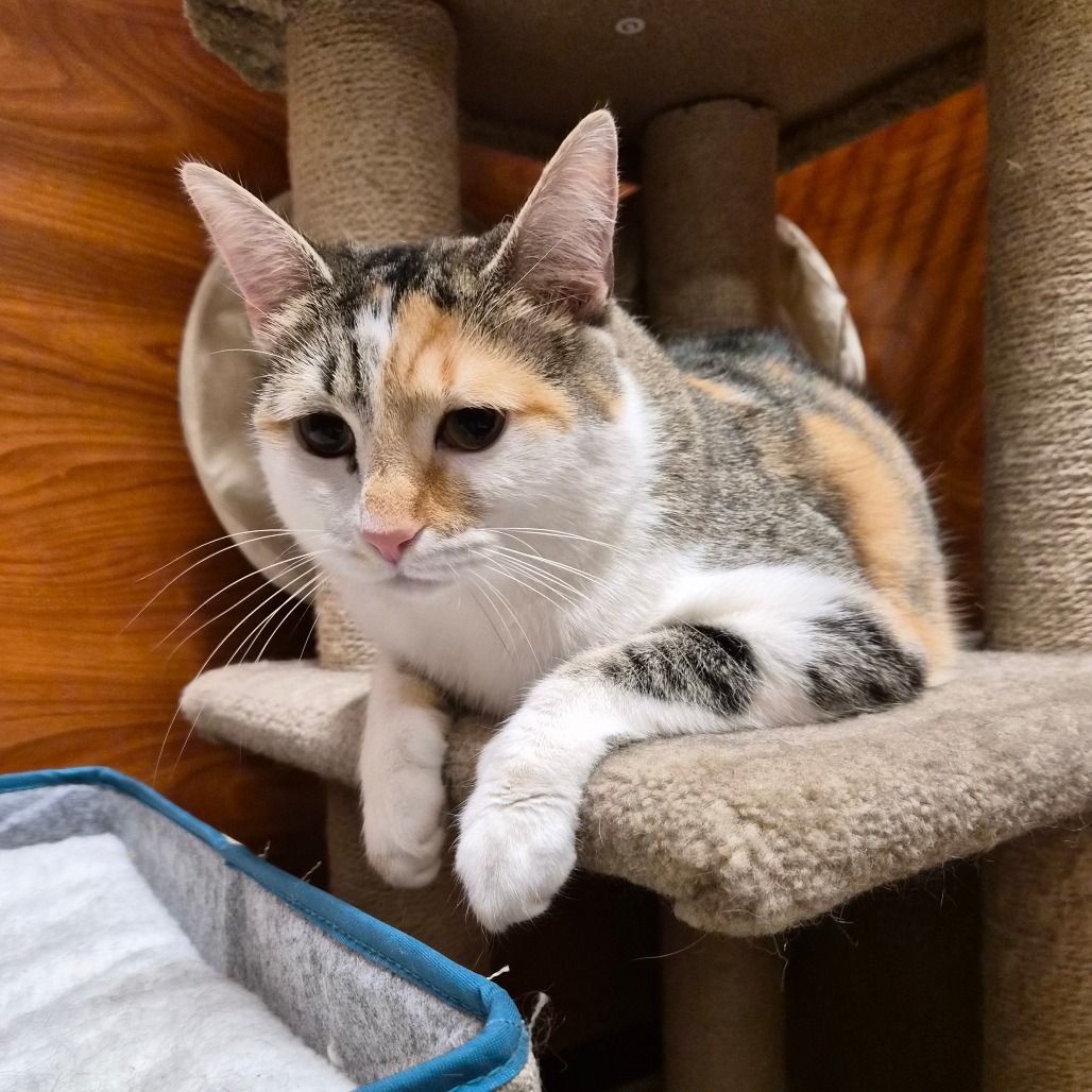 This beautiful tabbico girl is as sweet as they come. She’s super friendly, loves attention, and has the perfect balance of playful energy and snuggly lovebug charm. She does well with older children who understand gentle interactions and would thrive in a home that appreciates both her fun side and her affectionate nature. She’s ready to bring joy, companionship, and a whole lot of heart to her forever family. Go to furkids.org/adopt and complete an adoption application. Thanks for considering Furkids Animal Rescue and Shelters!