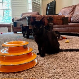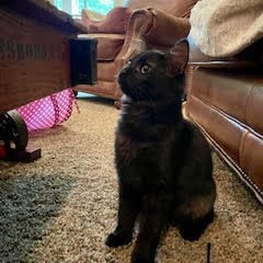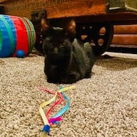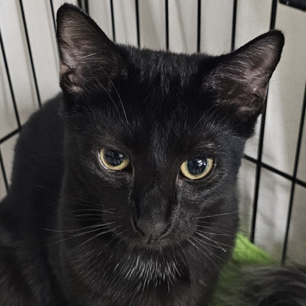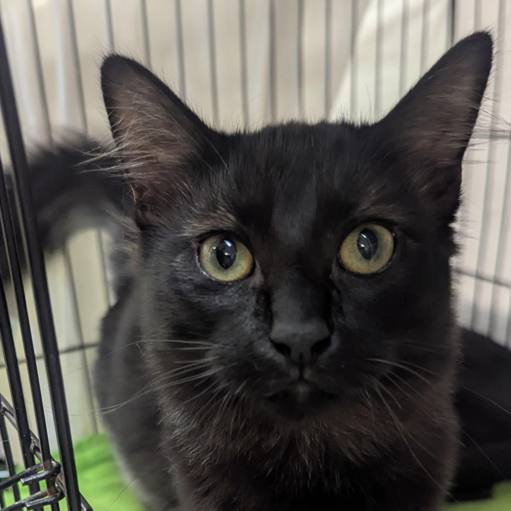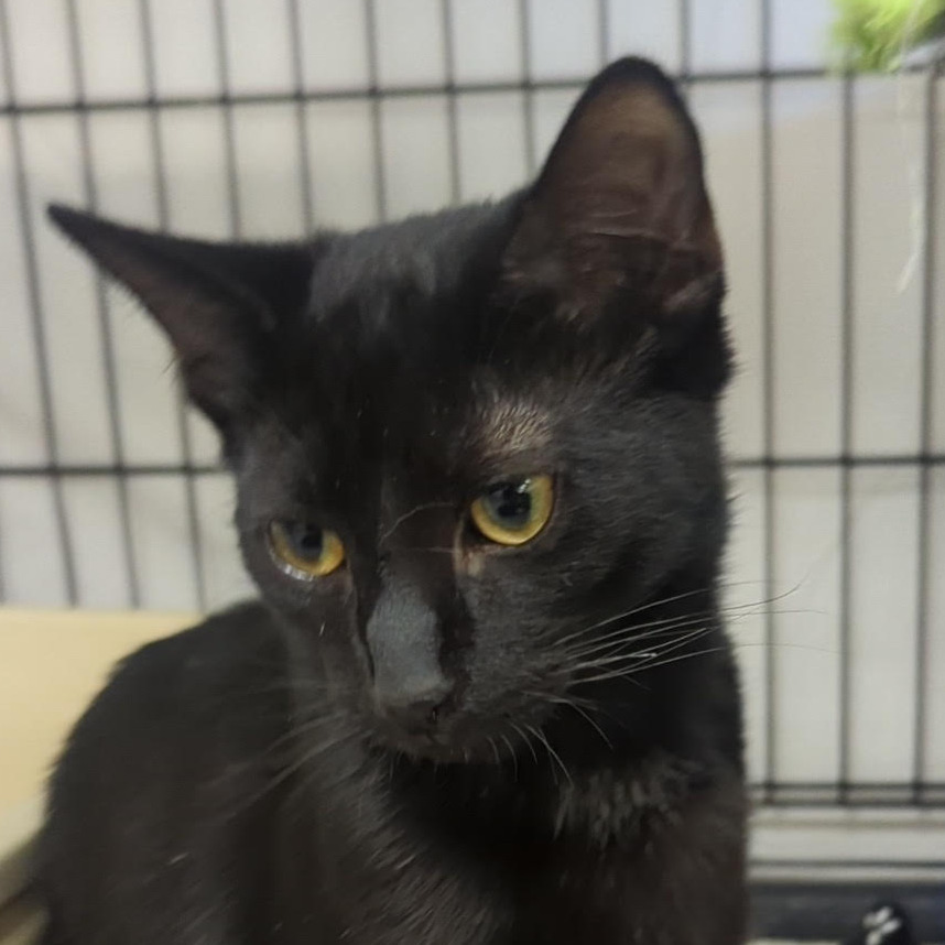 Hi I'm Gremlin 2! Gremlin 2 is an adorable little black cat with a sweet soul. He's very curious and playful when meeting new people. He also loves pets and playing with wand toys and crinkle balls. He enjoys cuddling with the other cats in his cage and also likes pets from his human friends. He is the perfect balance of playful and sweet! Go to furkids.org/adopt and complete an adoption application. Thanks for considering Furkids Animal Rescue and Shelters!m Gremlin 2!
