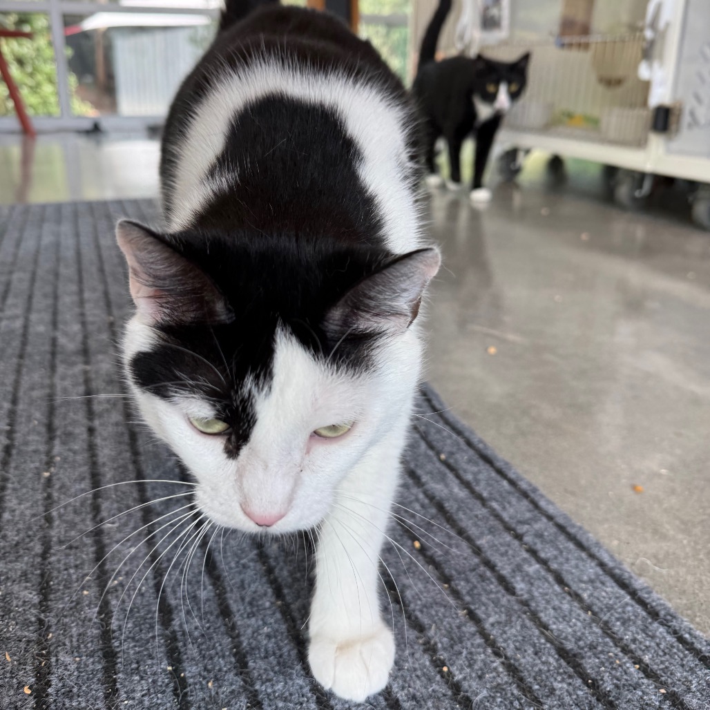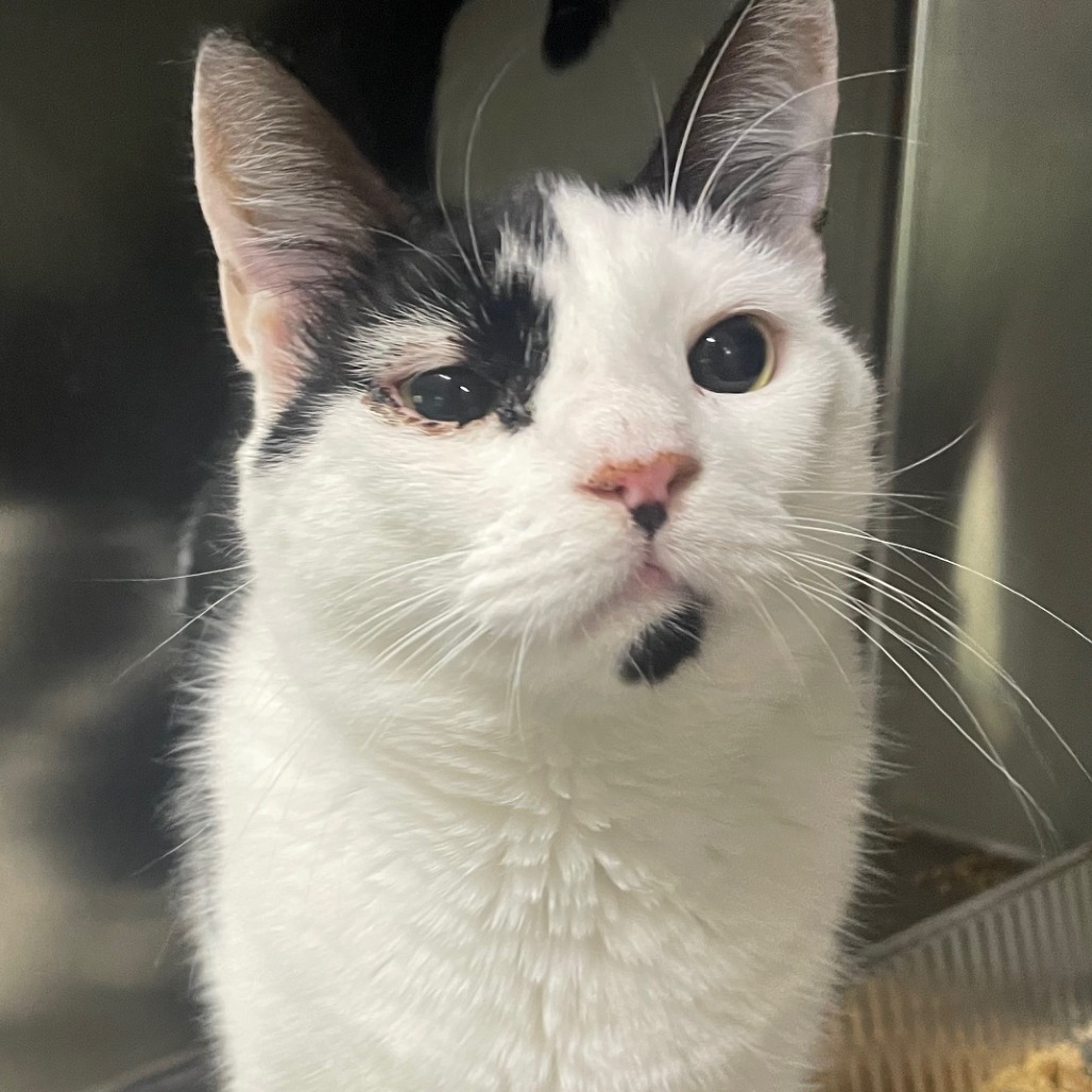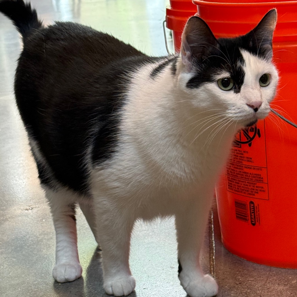 Hey, I’m Hendrix; your future best bud and resident chunky explorer! I’m a young “cow print” cat with a personality as bold as my pattern. I love to check out every corner of the room like it’s uncharted territory. Once I’m done adventuring, I’m all about relaxing. I get along great with kids, dogs, and other cats. I’m the kind of guy who’ll keep you entertained one minute and then flop beside you the next. I’ve got that perfect mix of playful energy and easygoing charm! If you’re looking for a friendly, fun-loving companion, I’m your guy. Come meet me —I’ll moo-ve right into your heart.
