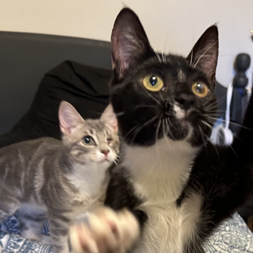 Hope is sweet, but cautious around humans. Her favorite toy is a metallic, crinkly fringe wand. Just reaching for the toy has all of them excited and eager to play! Hope has come a long way but needs a patient human to help her learn to trust. She can be a little rough with toys and could scratch or bite if not given time to adjust. Once she gets to know you she will demand her cat treats.