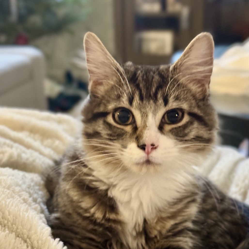 Meet this sweet little gentleman who loves nothing more than planning out his perfect day of cuddles, playtime, and cozy naps. He’s thoughtful, gentle, and has the softest heart—you can practically see his little brain working as he decides which toy to pounce on next. He absolutely adores his foster buddy Rowena, and the two of them make an adorable, inseparable pair. They’d be over the moon to find a forever home together where they can keep being the perfect little duo they’ve become.