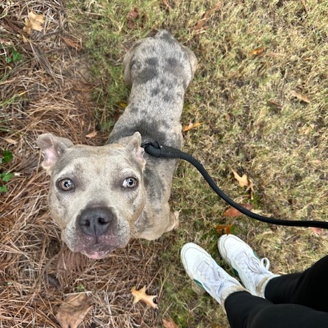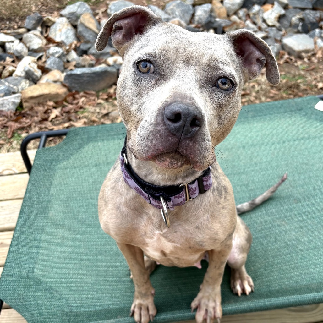 Meet Juno Summer — A Sweet Survivor Ready to Share Her Love! Juno Summer is a beautiful 2-year-old Pit mix with a heart as big as her story. Found as a stray alongside her two sisters, she arrived extremely emaciated and in need of rehabilitation. Through love, care, and patience, Juno not only survived but thrived—and now she’s ready to bring joy to a forever home. Juno is playful, social, and loves everyone she meets. She has a gentle nature and moderate energy, making her the perfect companion for playtime, snuggles, or just hanging out. She’s food-motivated and has been excelling with basic training. She is crate trained and has never had accidents while in a kennel, so she’s expected to transition smoothly to house training. Currently in a foster home with another dog, Juno is showing she does well in a multi-dog environment and would love a home where she can continue to thrive and share her love. Healthy, happy, and full of affection, Juno Summer is ready to be someone’s devoted best friend. Juno Summer currently weighs about 41lbs., is approximately 21 years old (est. birth date 11/05/2023), and her adoption fee is $315. Juno Summer has been spayed, is up to date on all vaccinations & preventatives, and is microchipped. If you want to know more about Juno Summer, please complete a survey at https://www.shelterluv.com/matchme/adopt/FKDS/Dog. After submitting a survey, an adoption counselor will contact you within 72 hours to give you more information about the dog you are interested in adopting and to arrange for you to meet. You must be at least 21 years of age to adopt.
