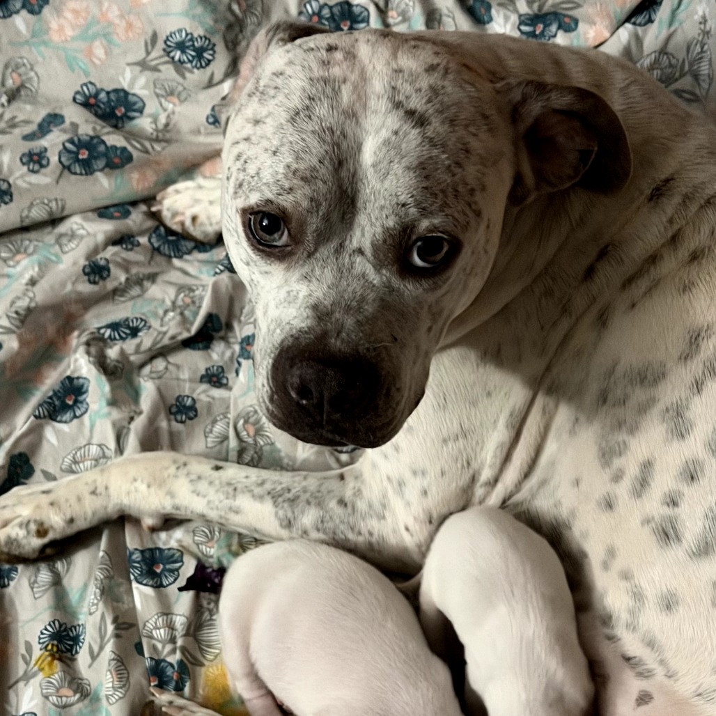 We found Lavender at a county shelter with what was left of her litter of 8 puppies, some of which had already passed - found out in the freezing cold. Thanks to our fosters, who took them in and nurtured them, all but one of the surviving pups have been adopted and Lavender is ready to find her furever home. Lavender was almost totally shut down when she came to us but has learned that she can give and accept love from her foster. She’s learned improved leash skills, is totally potty trained and gets along with everyone, including dogs, cats and humans. Whoever adopts Lavender simply needs patience and the willingness to love this incredible animal into being the loving, trusting companion she wants to be. Kids in any household will need to go slow and let her approach them first. You won’t ever find a sweeter dog. All she needs is a chance. Lavender currently weighs about 41lbs., is almost 2 years old (est. birth date 08/28/2023), and her adoption fee is $315. Lavender has been spayed, is up to date on all vaccinations & preventatives, and is microchipped. If you want to know more about Lavender, please complete a survey at https://www.shelterluv.com/matchme/adopt/FKDS/Dog. After submitting a survey, an adoption counselor will contact you within 72 hours to give you more information about the dog you are interested in adopting and to arrange for you to meet. You must be at least 21 years of age to adopt.