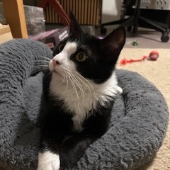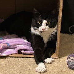 Meet Lazarus, a handsome boy with a gentle soul and a playful spirit! He’s the kind of cat who quietly wins your heart. He is well mannered, curious, and full of charm. He has excellent house manners and has not jumped up on a desk or chair, making him an easy and respectful companion in the home. He’s also a pro when it comes to his litter box habits. When it’s playtime, his personality really shines! He loves toys, especially chasing balls. He is cautious with new people. This special boy is looking for a patient, understanding home where he can continue to blossom. If you’re willing to let him set the pace, you’ll be rewarded with a loyal and loving companion.