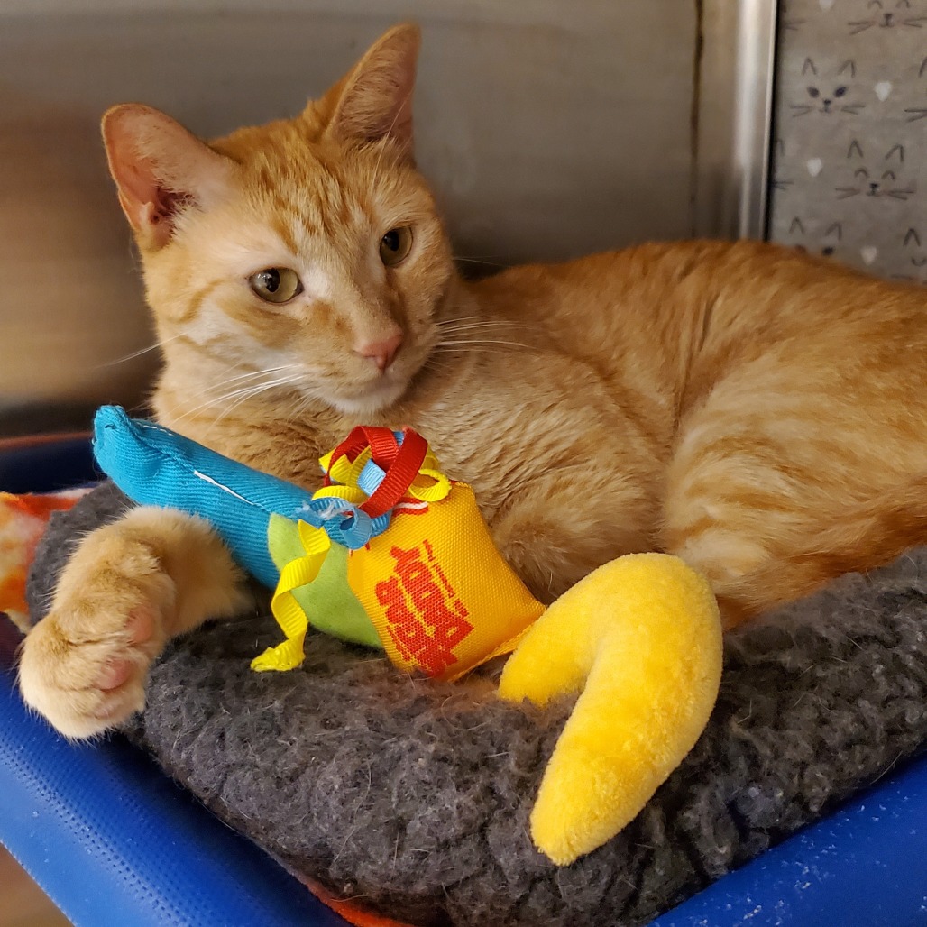 Meet this charming 4-year-old orange tabby, who loves a good conversation. Whether it’s telling you about his day or simply chirping for attention, he’s a vocal bundle of love. He likes to be in a busy home with children and lots of attention. He might talk your ear off, but it’s all worth it for the love he gives in return. If you’re looking for a companion who’ll chat with you through everything and never leave your side, this affectionate tabby is your guy.