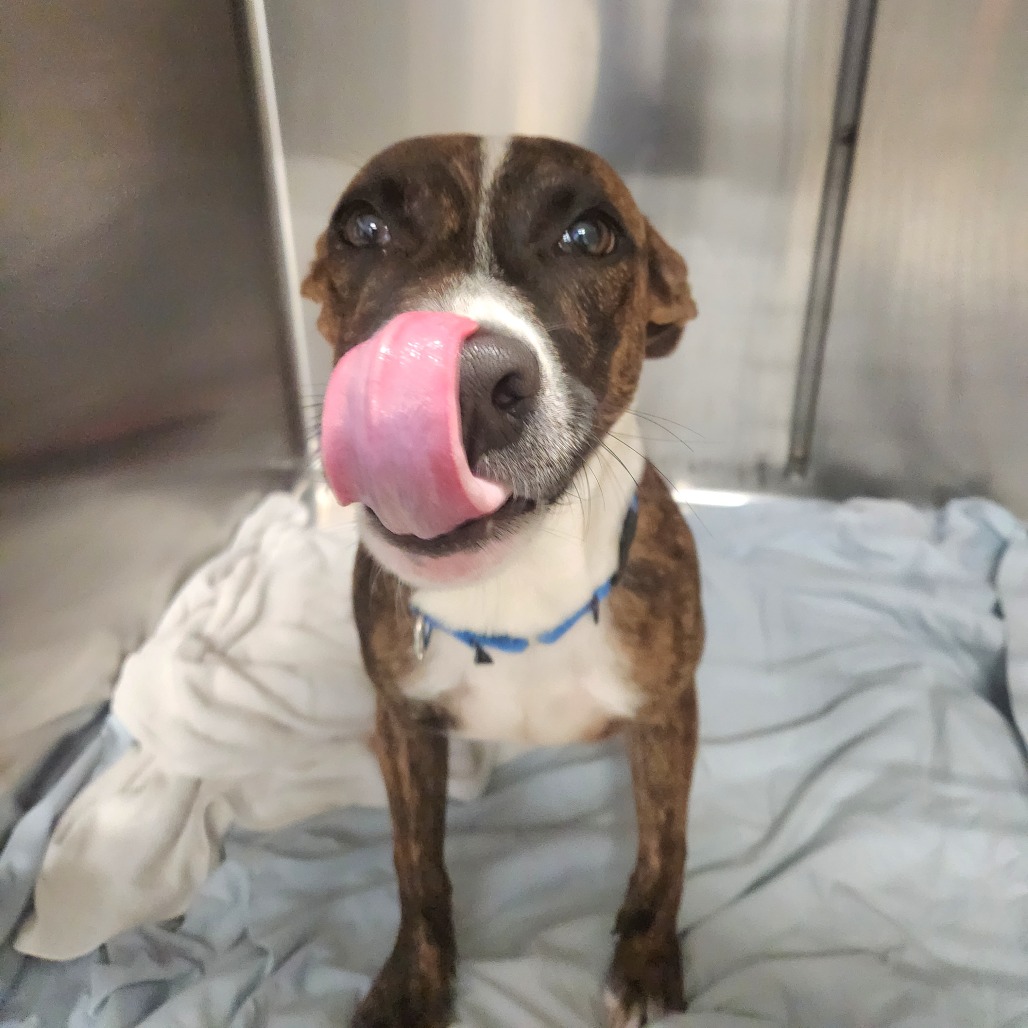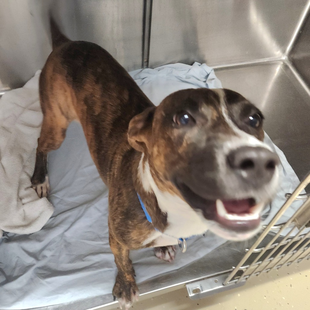 Little Bear is an 8-month-old Pit mix pup with a big heart and an even bigger supply of love to give. True to his name, he’s a lovable cuddle bug who adores being close to his people. With moderate, manageable puppy energy, he’s the perfect balance of playtime fun and snuggly downtime.