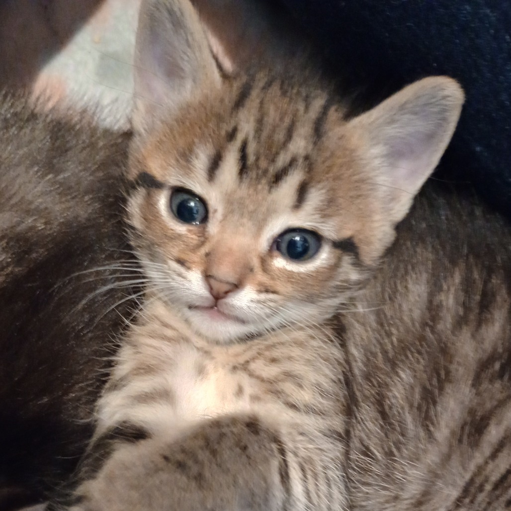 Mallard is a mini-me to her mom, Daphne. She loves her mommy!! She would be great with an older cat (or her Mom). She is a gorgeous dilute tabby. She has the cutest spotted tummy and loves to have it tickled. She has beautiful cinnamon highlights and the cutest pink nose. She is a cuddler. She loves being around her people. She is the first one to the food bowl, but she is so polite and moves over for her siblings if needed. She has the cutest little dimple markings next to her nose.