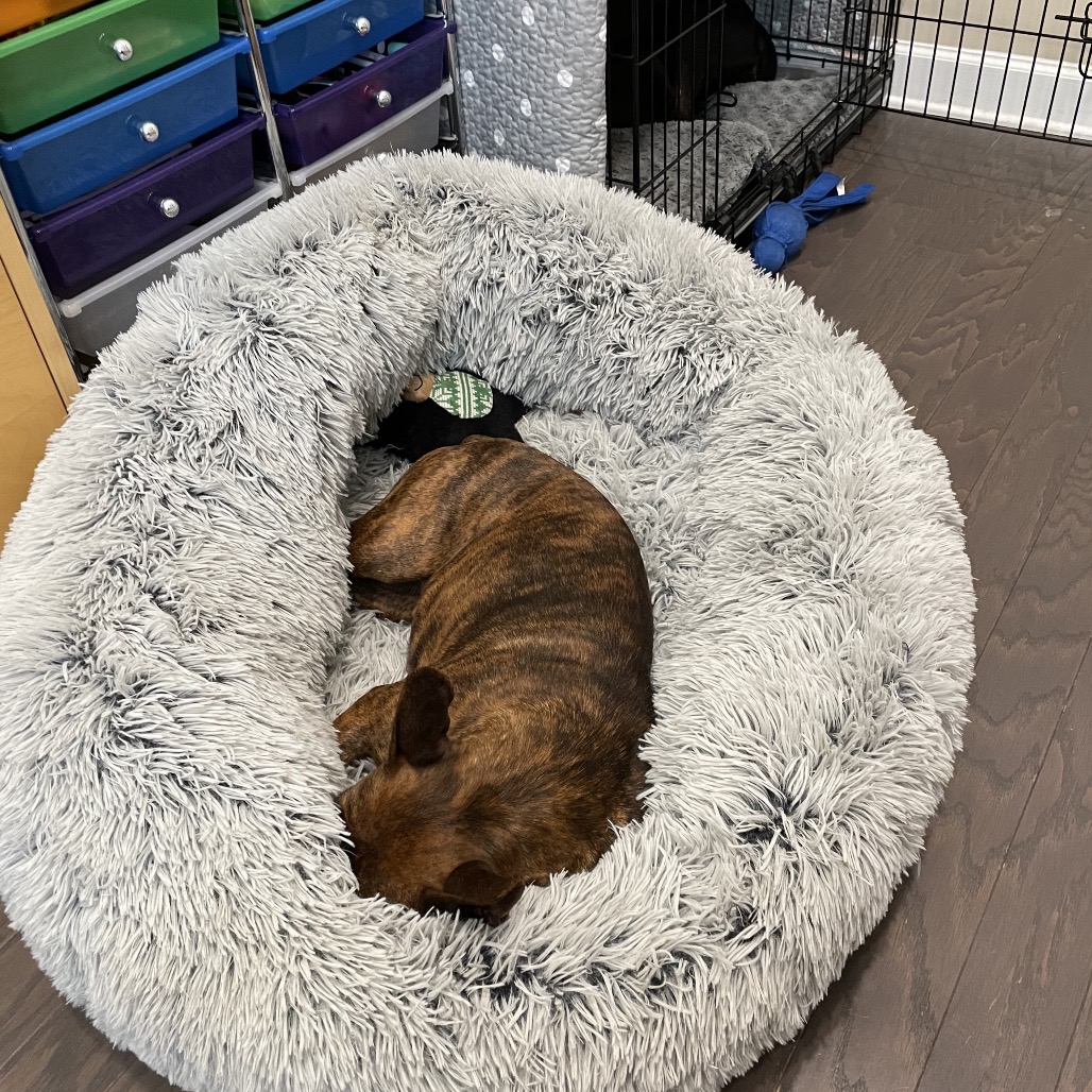 Meet Mercedes! Mercedes is a 3.5-year-old female mixed-breed dog with a stunning brindle coat and the sweetest personality. She’s a true cuddle bug who loves spending time close to her people. She’s very well-mannered—quiet, not destructive, and a joy to have around the home. Mercedes is learning her leash skills beautifully and continues to make great progress each day. She enjoys playtime but is just as happy relaxing and soaking up affection, making her a wonderful moderate-energy companion. Until she is fully leash trained, Mercedes will require a home with a fenced-in yard to help keep her safe and confident as she continues learning. With her gentle nature and balanced personality, she would make a loving addition to many types of homes. Mercedes currently weighs about 33lbs., is approximately 3 years old (est. birth date 06/15/2022), and her adoption fee is $315. Mercedes has been spayed, is up to date on all vaccinations & preventatives, and is microchipped. If you want to know more about Mercedes, please complete a survey at https://www.shelterluv.com/matchme/adopt/FKDS/Dog. After submitting a survey, an adoption counselor will contact you within 72 hours to give you more information about the dog you are interested in adopting and to arrange for you to meet. You must be at least 21 years of age to adopt.