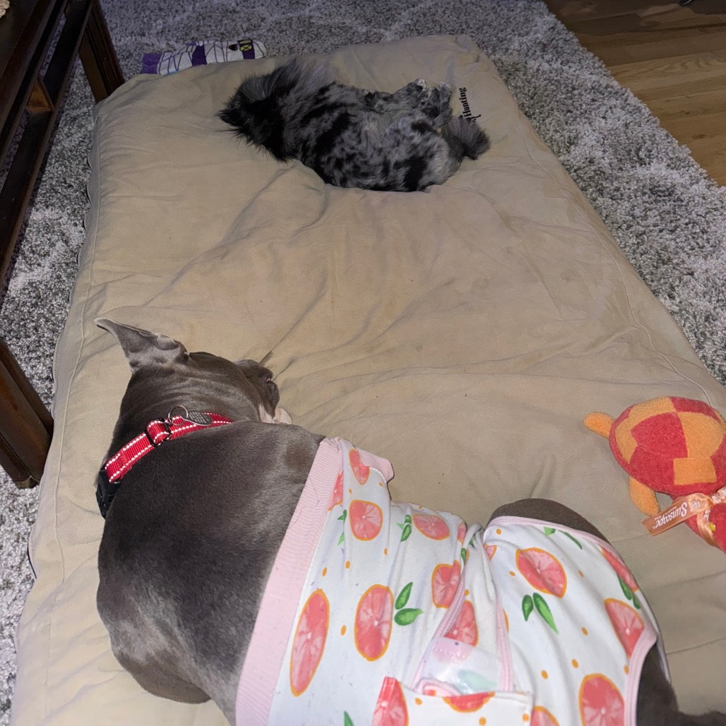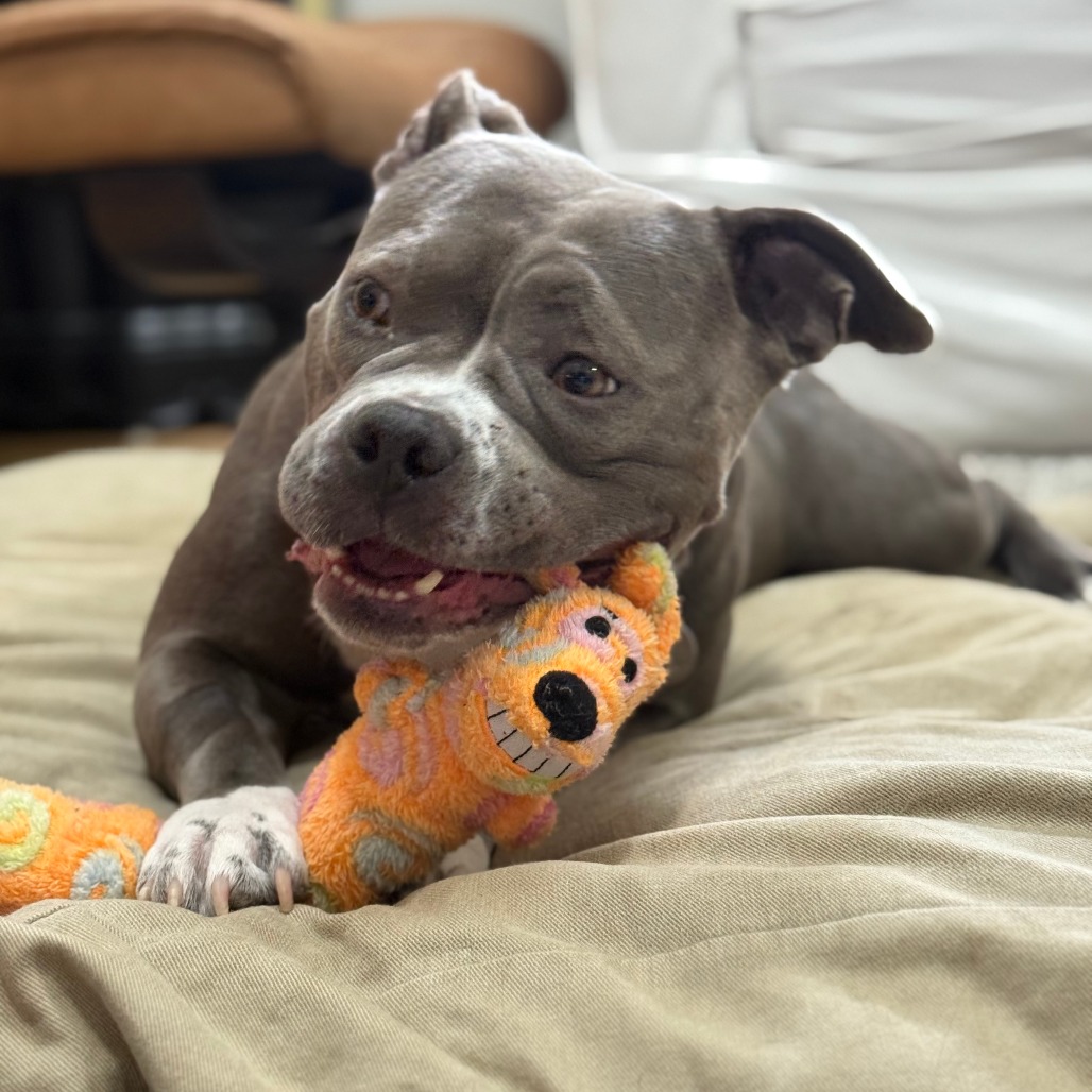 Mercy is thriving in her foster home—her playful personality is shining, her energy is back to normal, and she loves both playtime and cozy naps. She gets along wonderfully with other dogs, enjoying walks and even sharing a dog bed with her foster’s small Pomeranian. Mercy is affectionate, social, and ready to bring joy to her new family.