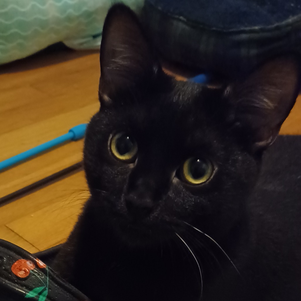 Mezzanote (white whiskers) is sweet, playful and funny and is bonded with her similarly energetic sister Minuet. Mezz loves toys and also to chase and wrestle with her sister. She loves to race after small, flippy bits at the ends of fishing pole toys and leap onto a cat tree to carry them down. For playing on her own, she loves soft toy mice.