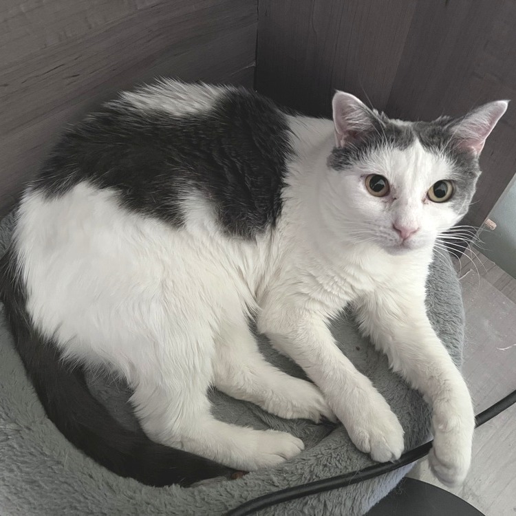 Moana is an independent spirit with a soft spot for the people she trusts. She enjoys attention on her terms and is happiest when she has the space to do her own thing. Her favorite pastimes include lounging in a cozy cat tree and stretching out on a good scratcher. She's low-key and calm — the perfect companion for someone who appreciates a quiet, respectful roommate. Moana needs to be adopted with her mom Sina.