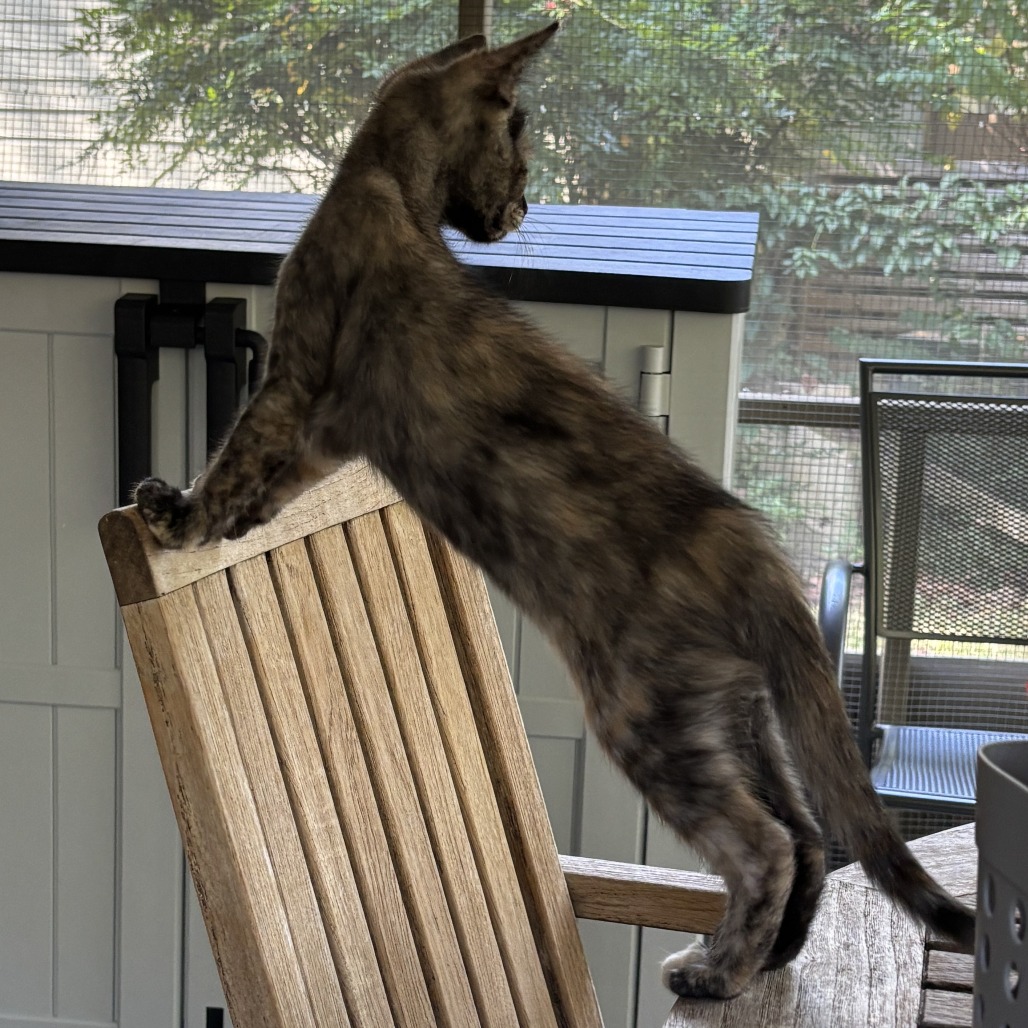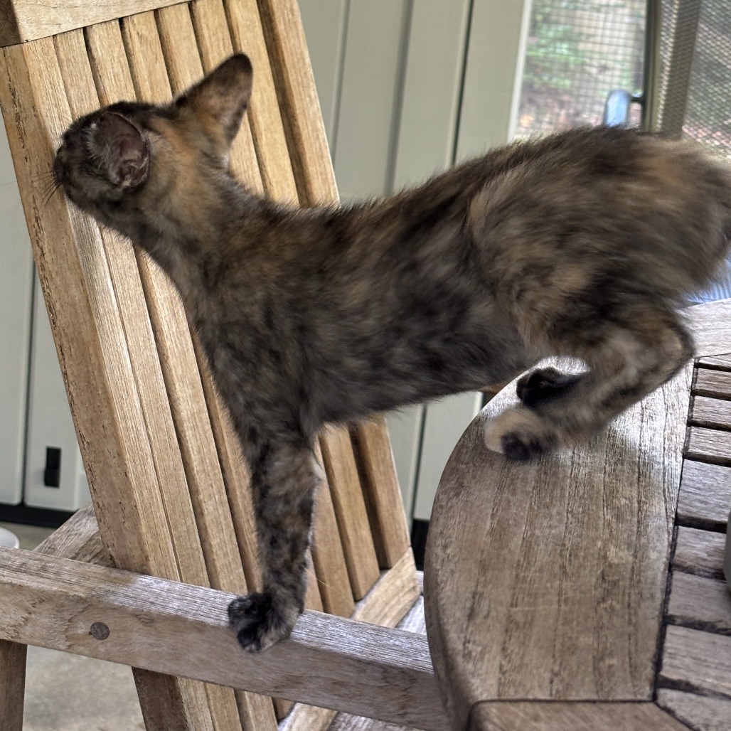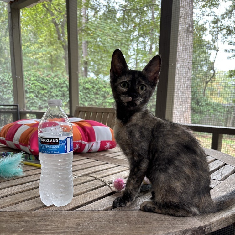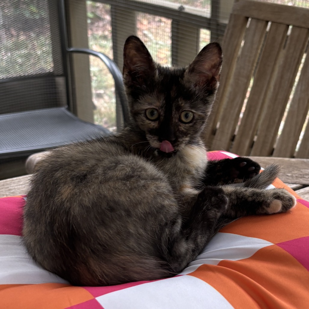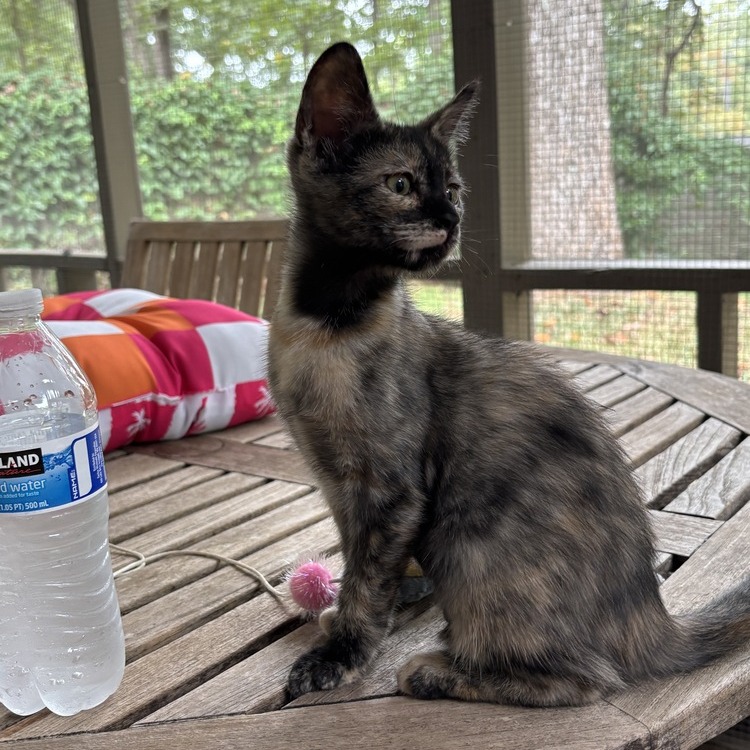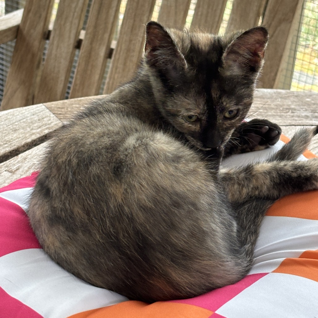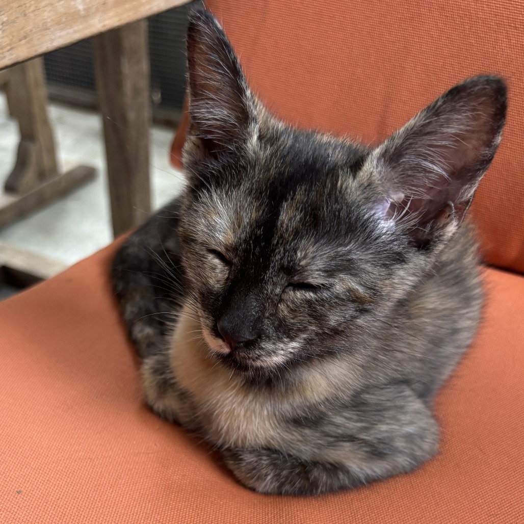 Mona Lisa is a gentle soul with a playful spark. Though she may be shy at first, this affectionate kitten blossoms with patience and love. Over time, she’s grown more confident and cuddly, revealing a tender side that melts hearts. She enjoys quiet playtime and cozy snuggles, and her trust builds steadily with each kind interaction.
