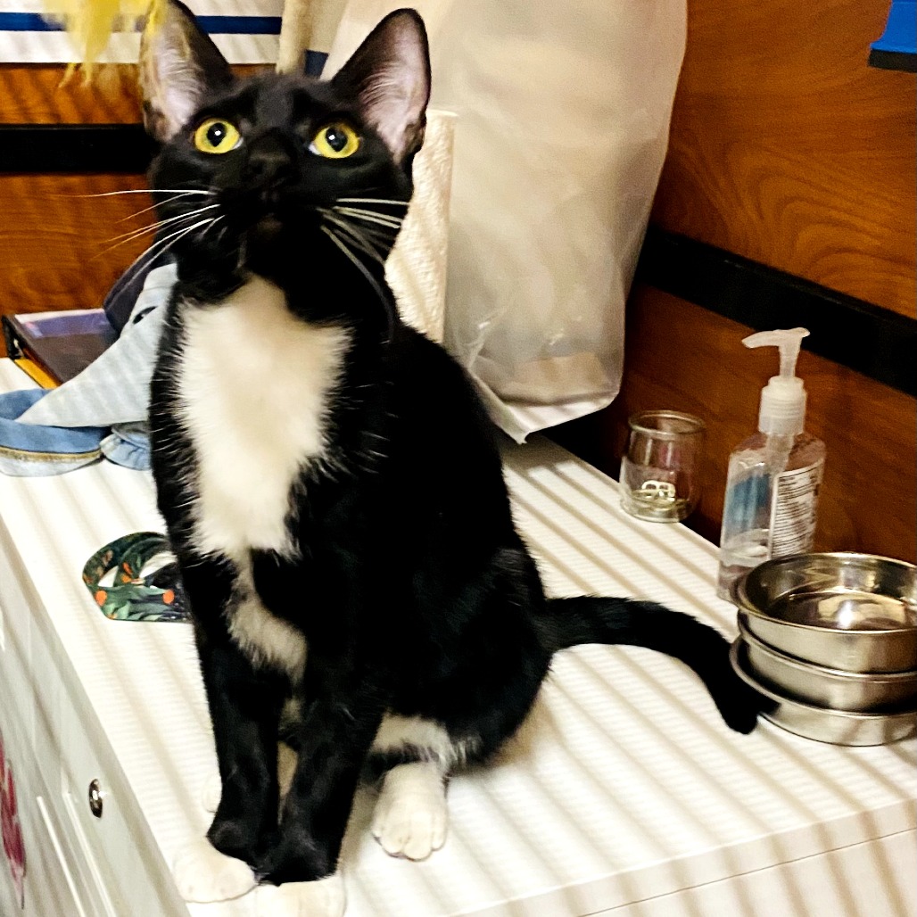 A Tuxie with Moxie! Naomi is a stunning tuxedo girl with a heart full of adventure and affection. She’s got the playful spirit of a kitten and the gentle soul of a best friend. Whether she’s chasing toys with fearless flair or curling up beside you for a quiet cuddle, Naomi knows how to balance fun and tenderness like a pro.Ready to make her part of your adventure? Go to Furkids.org/adopt and complete an adoption application. Thanks for considering Furkids Animal Rescue and Shelters!