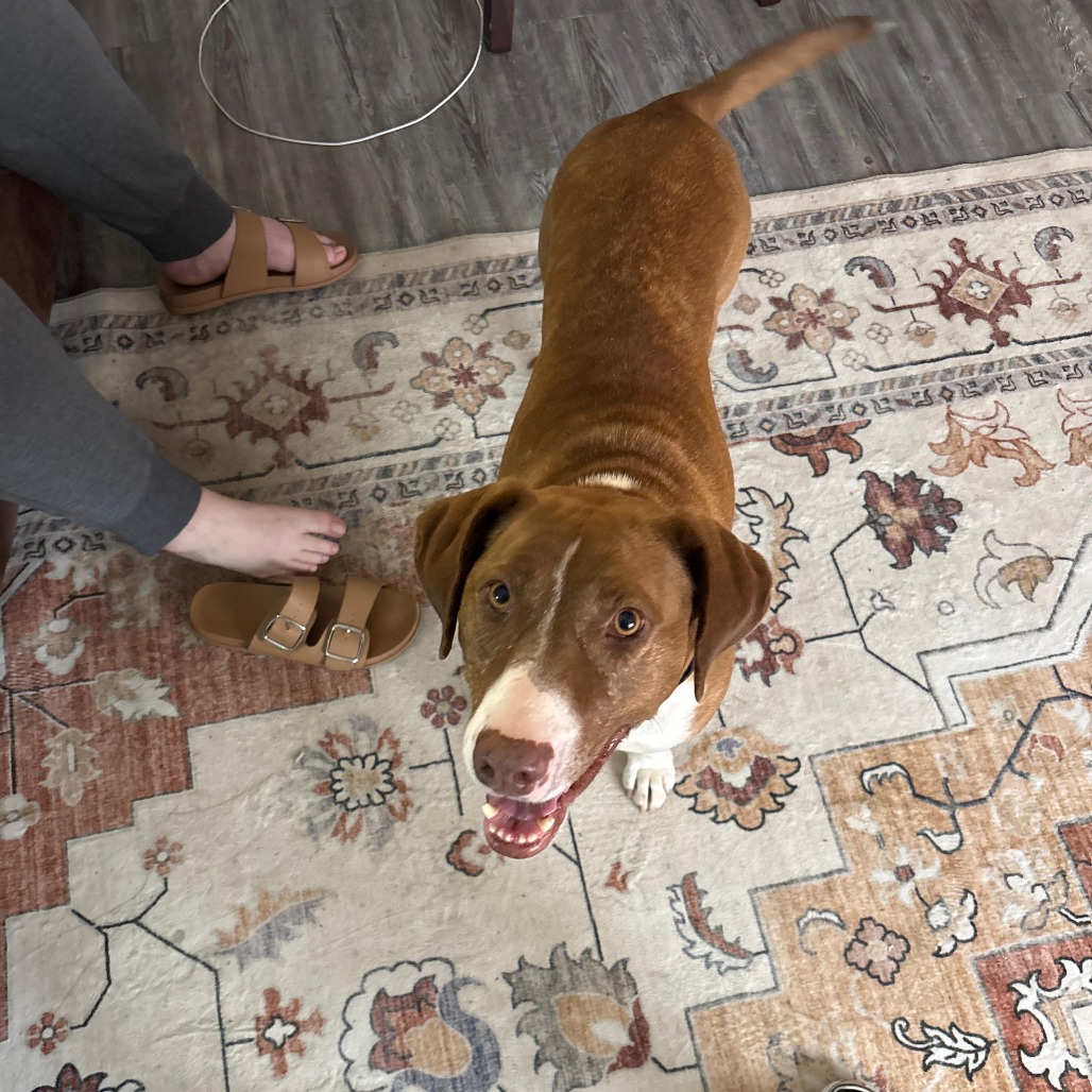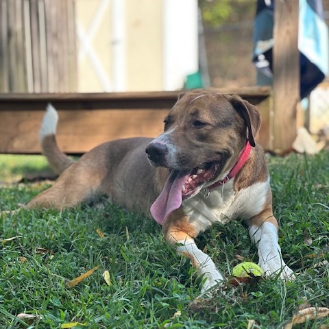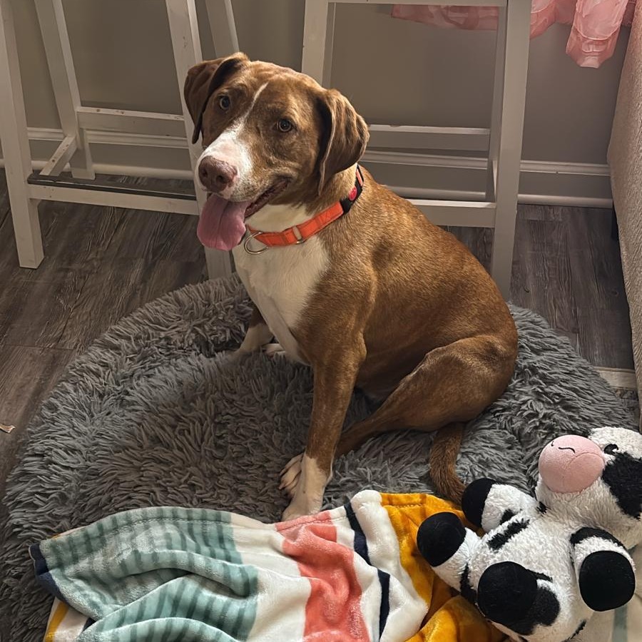 This sweet girl is the perfect mix of calm and playful. She loves curling up beside you for cuddles, but she also enjoys showing off her silly, fun side. Nikki is house-trained, crate-trained, and already knows her commands—sit, lay down, and up—making her an easy fit into a new home. She’s friendly, affectionate, and welcoming to everyone she meets.