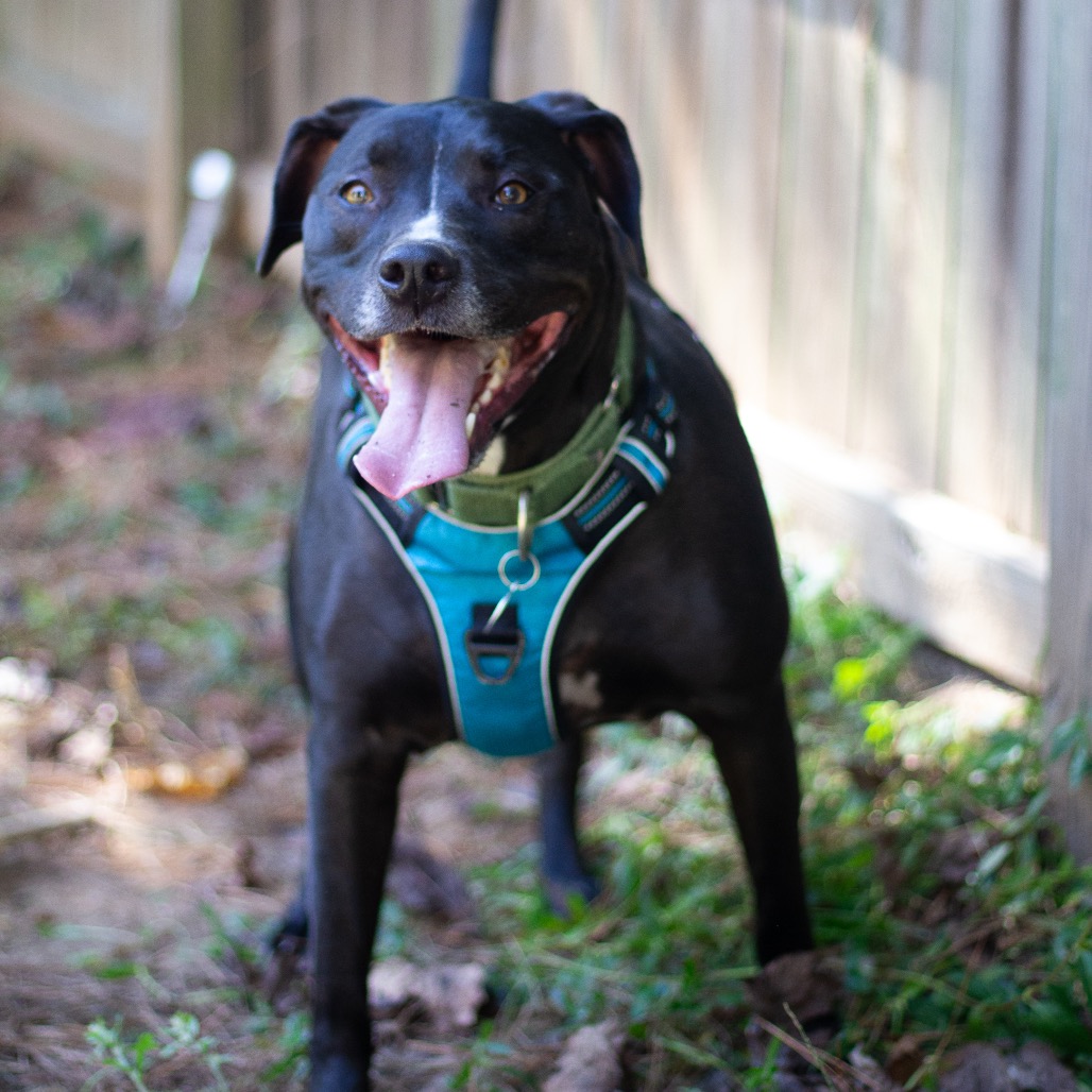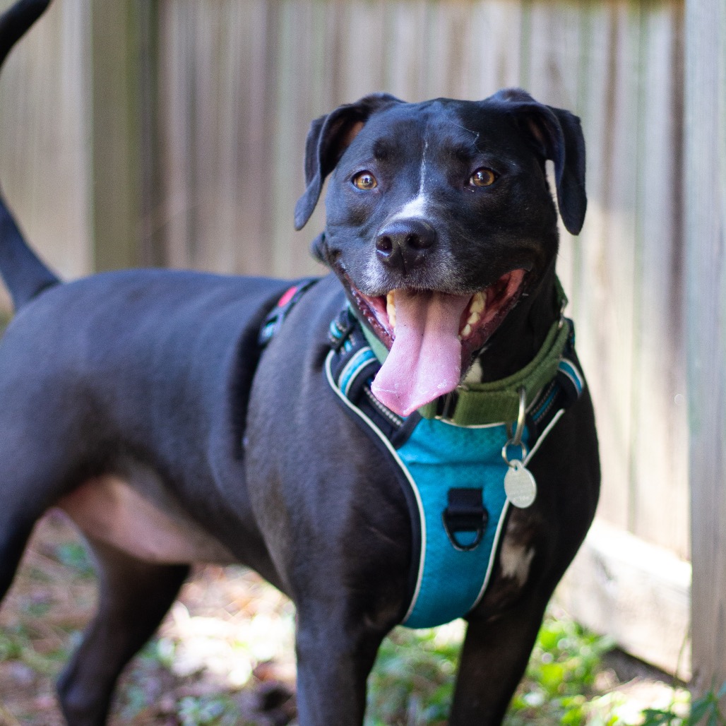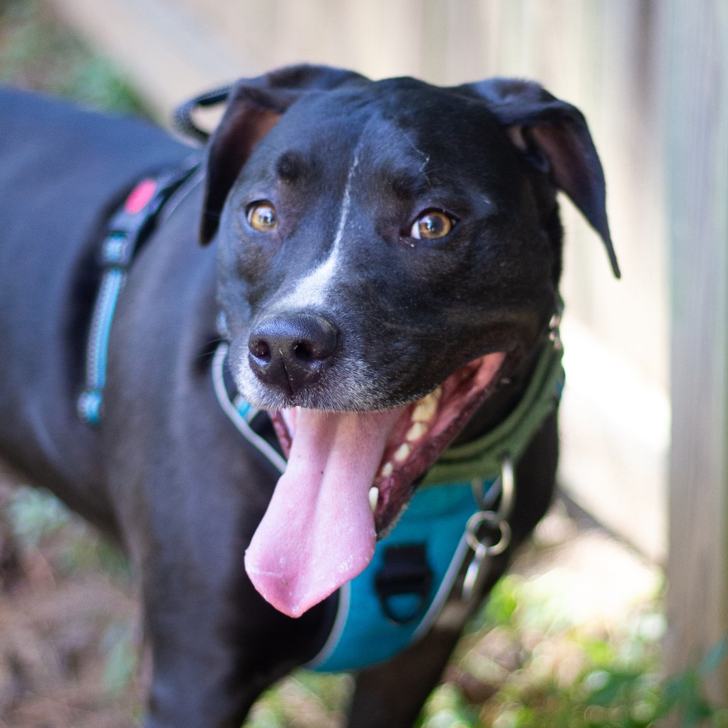 Nova’s journey has been quite an adventure - all the way from the beaches of Puerto Rico to here! This almost 5-year-old black Pitbull mix is as radiant as her name suggests. She was adopted once and loved dearly, but found herself back with us when her owner had to move and couldn’t take her along. Now, Nova is hoping her next chapter will be her forever one. Nova is housetrained, food-motivated, and full of zest for life. She thrives in an active lifestyle. She’s been working with a trainer to strengthen her leash manners, recall, and commands, and she’s eager to keep learning (especially if treats are involved).