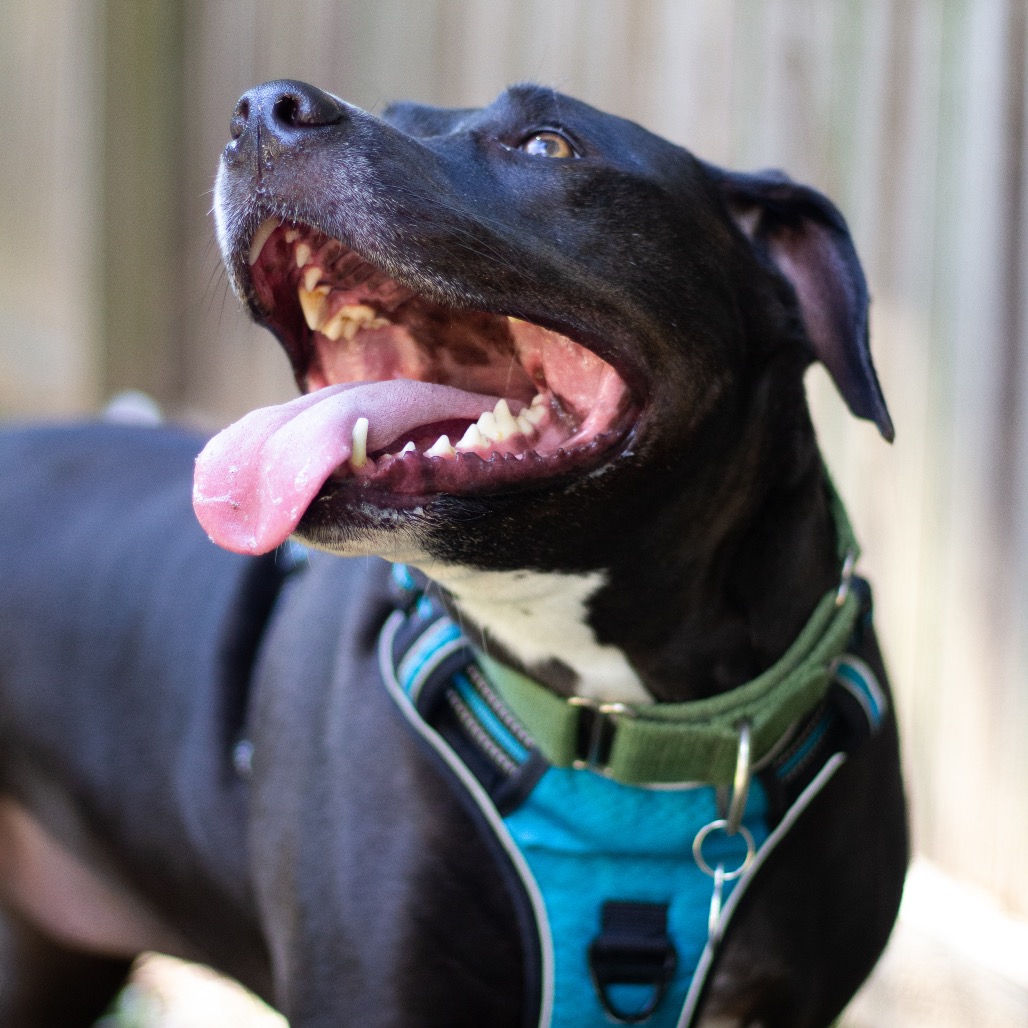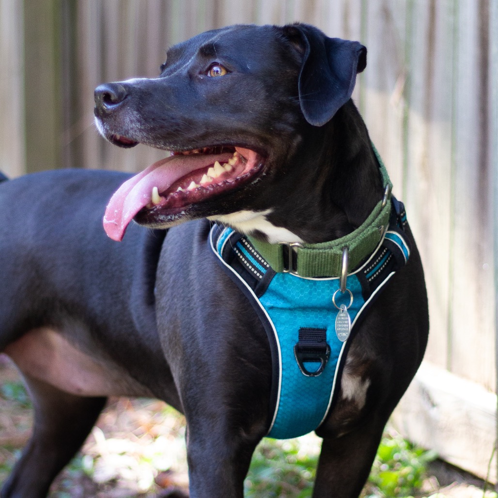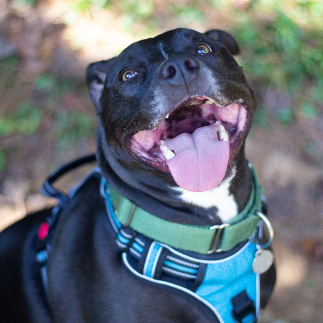 Nova’s journey has been quite an adventure - all the way from the beaches of Puerto Rico to here! This almost 5-year-old black Pitbull mix is as radiant as her name suggests. She was adopted once and loved dearly, but found herself back with us when her owner had to move and couldn’t take her along. Now, Nova is hoping her next chapter will be her forever one. Nova is housetrained, food-motivated, and full of zest for life. She thrives in an active lifestyle. She’s been working with a trainer to strengthen her leash manners, recall, and commands, and she’s eager to keep learning (especially if treats are involved).