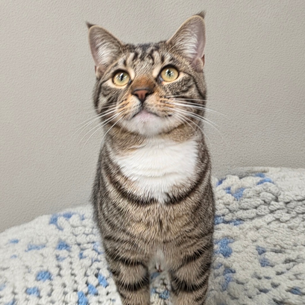 Ozzy is an observant sweetheart who enjoys anyone's company and soft snuggles. His tabby coat and white chest make him as handsome as he is kind. He’s great with children, dogs, and other cats, and can be adopted alone or with a sibling (Leo 1 or Luna 2). Go to furkids.org/adopt and complete an adoption application. Thanks for considering Furkids Animal Rescue and Shelters!