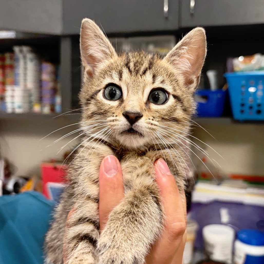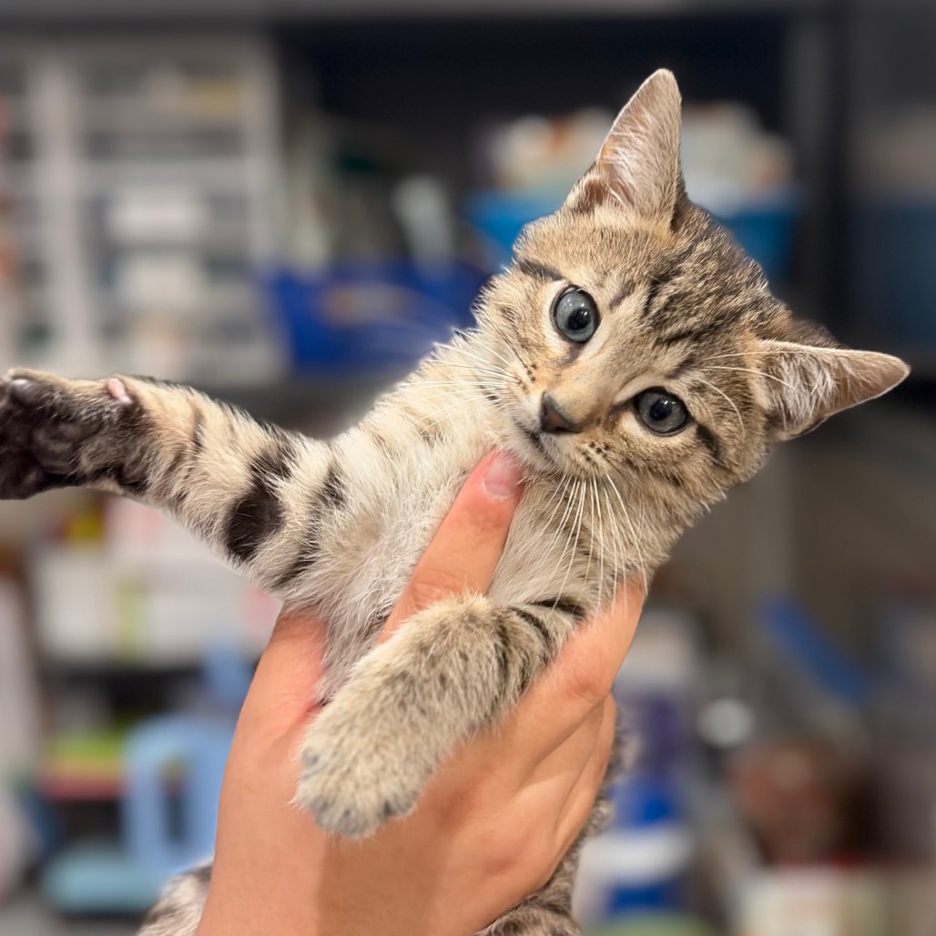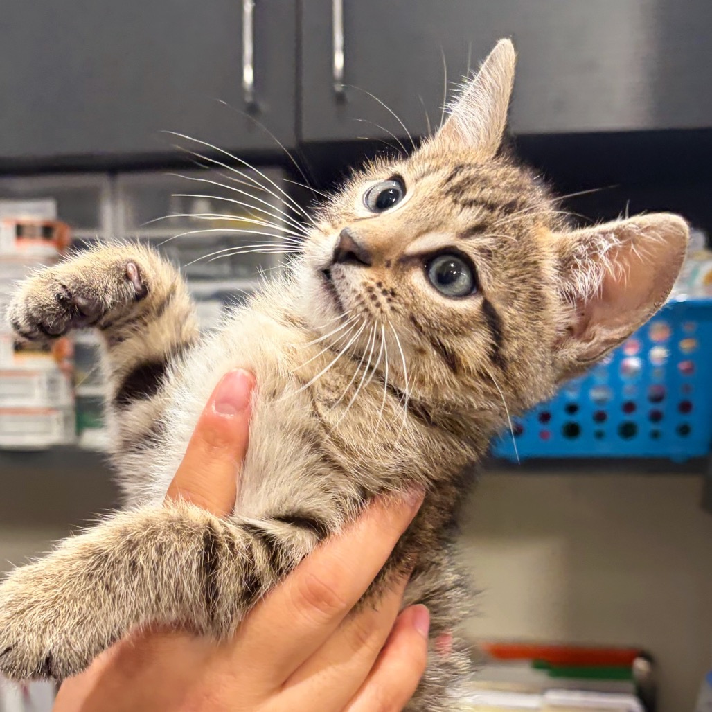 Meet Pip! At just 8 weeks old, this frisky furball is full of energy, curiosity, and kitten charm. He loves to explore, chase, and turn anything into a toy. Pip is still learning gentle play and can get a bit enthusiastic, so he’d do best with a patient cat friend or another playful kitten to help show him the ropes. With a little guidance, he’ll grow into a fun and affectionate companion. If you’re ready for laughs, pounces, and plenty of kitten zoomies, Pip is your guy!
