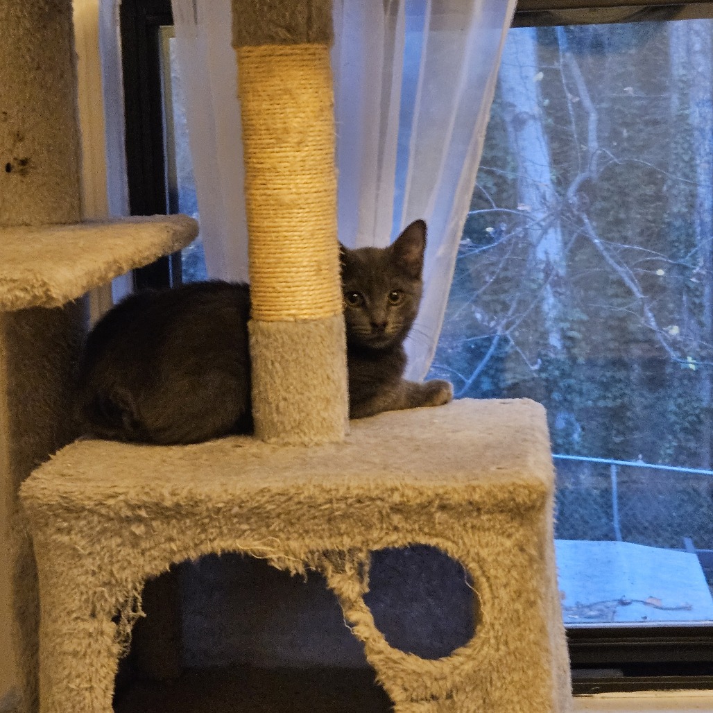She is the kind of cat who thrives in calm spaces, watching the world from a safe perch, and rewarding patience with fleeting moments of connection. Poppet may not be the life of the party, but she is the quiet soul who makes a home feel complete.
