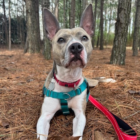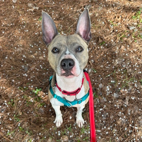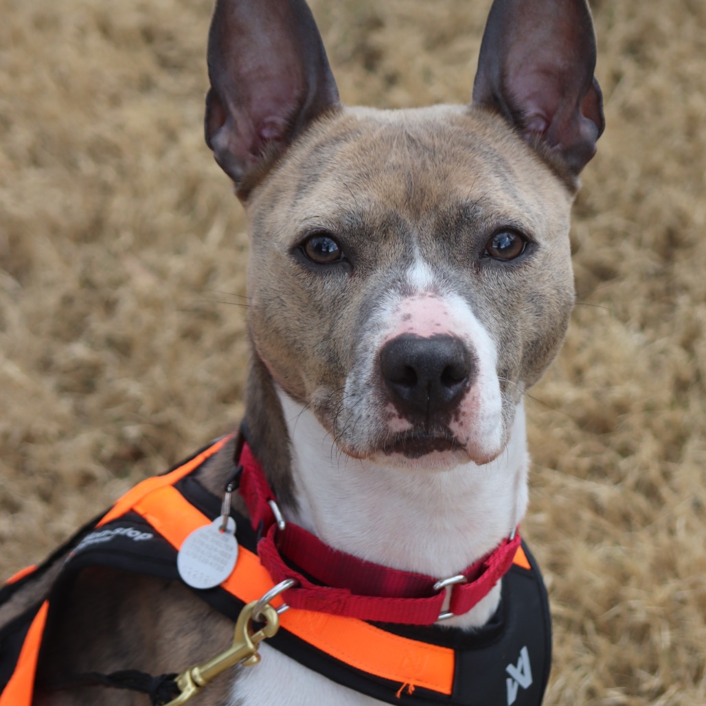 Princess is a 2-year-old Pit Bull mix who was found as a stray in a park, so her past is a bit of a mystery. She can be cautious with new people and has some stranger danger, but with patience and slow, positive introductions, she warms up and builds strong, trusting bonds.