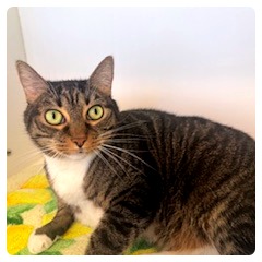 Meet Prissy! Despite her “fancy” name, Prissy is anything but stuck-up. She’s a total sweetheart who lives for affection and attention. Once she warms up to you (and it won’t take long!), she’ll happily curl up next to you for hours of snuggles, conversation and soaking up every bit of love she can get. She’s got one especially quirky trait: give her some good ol’ butt pats, and she’ll start drooling like she just found the world’s best treat. It’s her version of saying, “keep going!' If you’re looking for a cat who’s affectionate, talkative, and adorably weird in all the best ways, Prissy’s your girl!