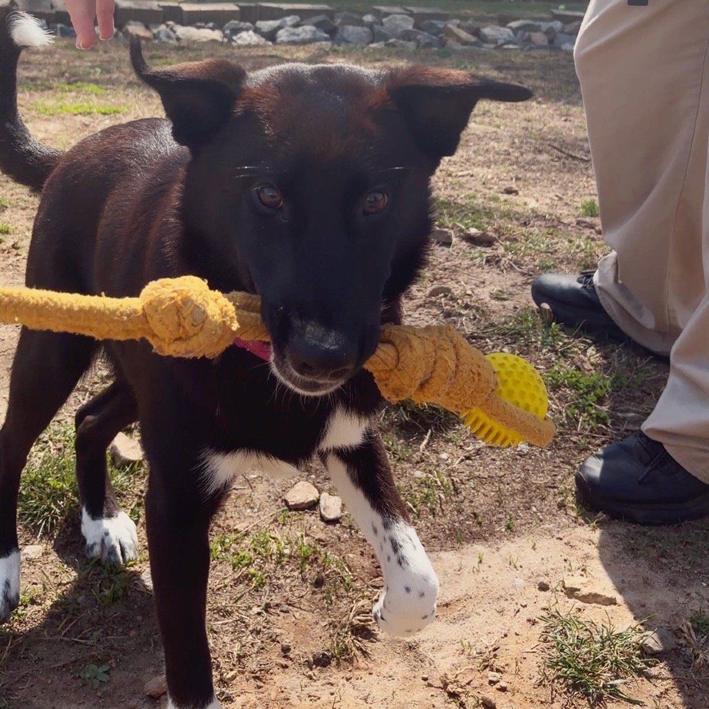 Like most puppies her age, Prudence is still learning her manners and impulse control. She is early in her training journey and will benefit from a patient, experienced adopter who can provide consistent structure, clear boundaries, and positive reinforcement. While she continues to learn, Prudence would do best in a home without small or young children.