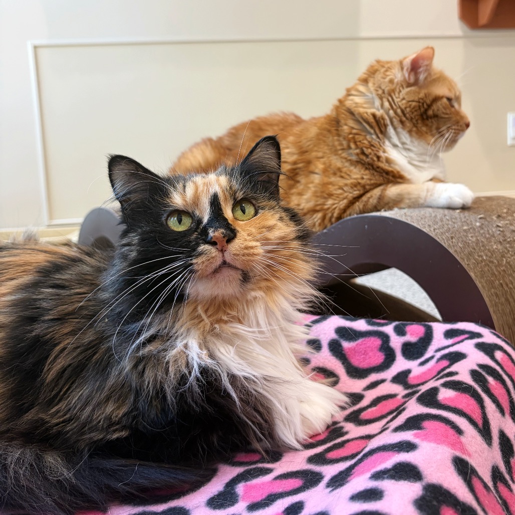 Pumpkin is a sweet soul, ready to shine in a home of her own. She and her best friend and brother Lenny joined Furkids after their owner passed away. These two were experiencing the grief of losing the only home they knew, and it took several months for them to come out of their shells. Pumpkin is still a little reserved but has shown that she is a loving, sweet, affectionate girl once she gets to know you. Those who truly know Pumpkin can see the amazing cat she is destined to be if you just give her the time she needs. Her brother Lenny is a huge source of comfort for her and his more outgoing personality helps show Pumpkin that new people aren’t so scary. These two deserve to live their golden years in a home with someone who will treasure them for the loving companions they are destined to be! If you’d like to meet them in person, please fill out an adoption survey at Furkids.org.