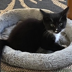 This handsome tuxedo kitten is the perfect balance of sweet and playful! Ramsay is a gentle soul who loves interactive play sessions but is equally content to relax nearby while you go about your day. Ramsay has the most endearing personality - he'll chase a toy mouse with enthusiasm, then settle down for a peaceful nap in a cozy spot. His sweet nature makes him wonderful company, and he's always ready with gentle head bumps and soft purrs for his favorite people. He's looking for a family who will appreciate his laid-back charm and provide him with engaging toys for his playful moments.