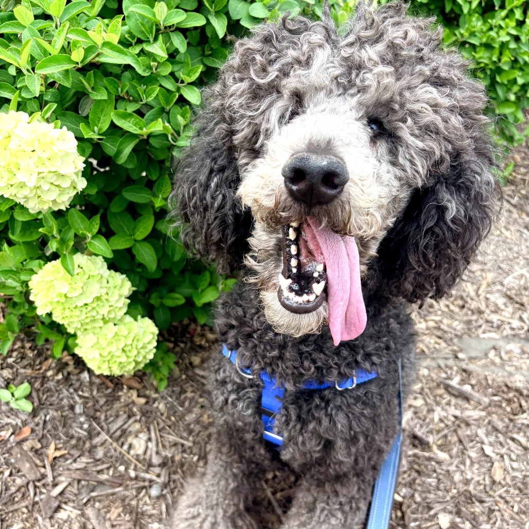 Romeo is a handsome standard poodle who is a fun, loyal companion and loves being with his person—whether it’s car rides, playing ball, or just hanging out. He’s great with people and other dogs, and his bouncy, goofy play style will keep you laughing. Romeo walks well on a leash and knows SIT and DOWN, but his excitement can lead to some twirling, which can make walks a bit challenging at times. He’ll do best with an experienced owner who can provide clear boundaries and guidance, because all he wants to do is please his person. He’s very gentle when taking treats from your hand and is great about dropping the ball so playtime can continue. He’s also patient and cooperative for grooming and baths, making him easy to care for. If you’re looking for a playful, devoted dog with lots of personality, Romeo could be your perfect match! Romeo currently weighs about 40 lbs. and is approximately 3 years old (est. birth date 02/23/2023). His adoption fee is $510. He has been neutered, is up to date on all vaccinations and preventatives, and is microchipped. If you want to know more about Romeo, please complete a survey at https://www.shelterluv.com/matchme/adopt/FKDS/Dog . After submitting a survey, an adoption counselor will contact you within 72 hours to provide more information and arrange a meet-and-greet. You must be at least 21 years of age to adopt.