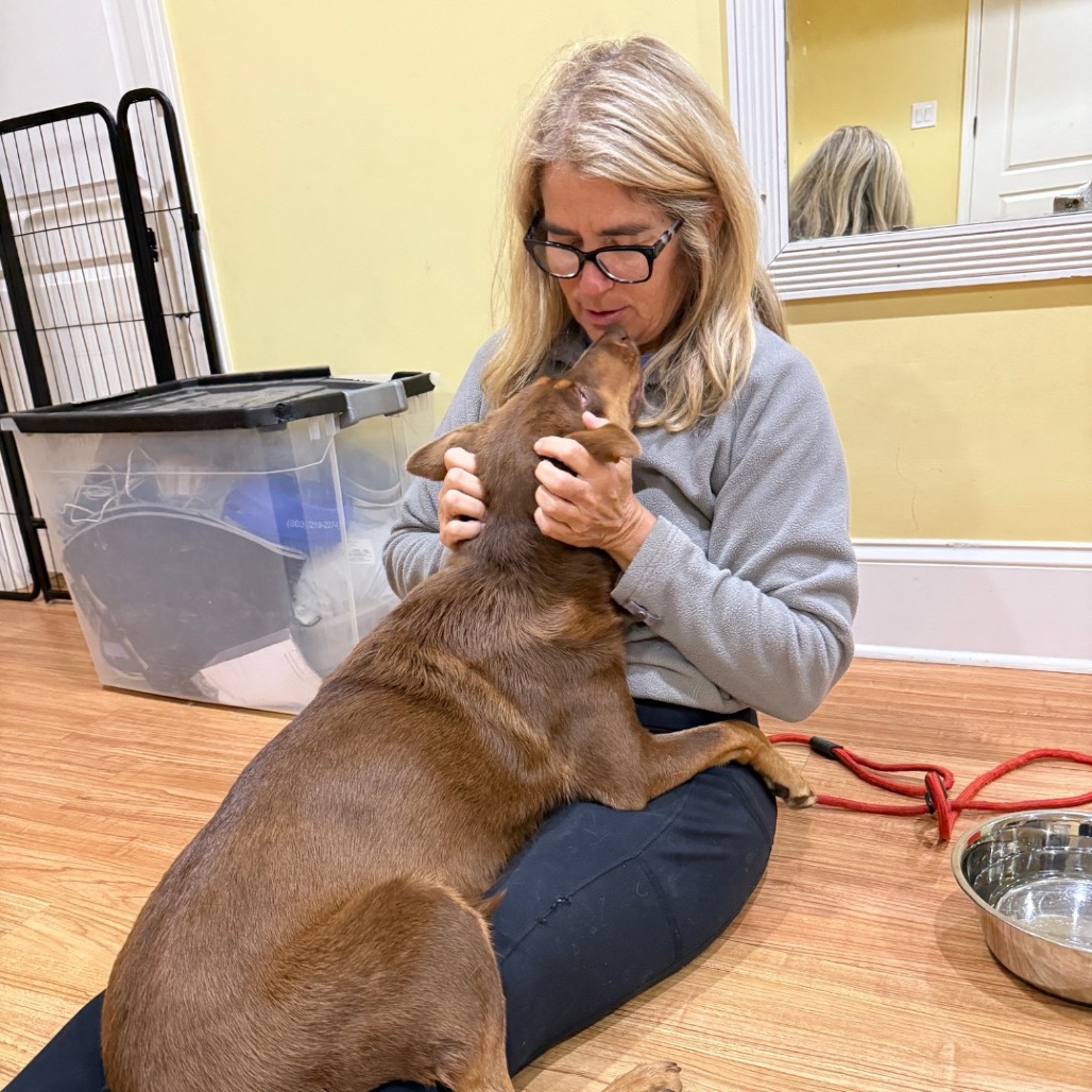She’s very loving and enjoys being close to her people, soaking up all the attention she can get. Sam is dog-friendly, crate trained, and mostly house trained, making her an easy addition to a loving home.