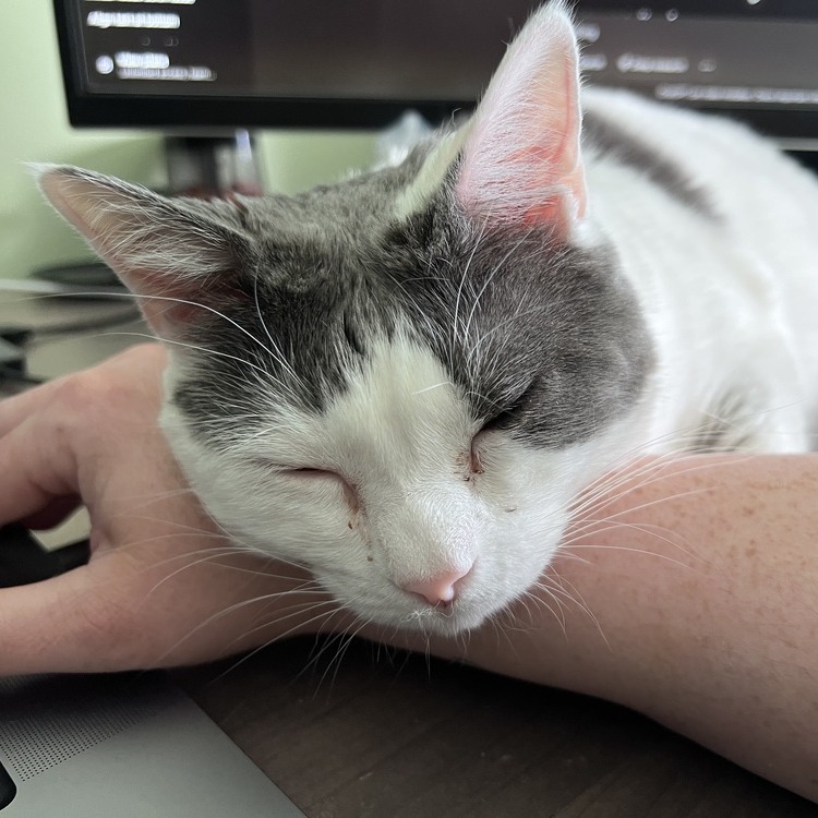 Sina is a sweet, affectionate girl who absolutely loves being close to her people. Her favorite spot is right beside you, resting her head gently on your arm. She’s not into toys or playing, but give her a soft place to sit and some gentle pets, and she’s in heaven. Scratchers are a bonus, but what really makes her happy is just being near you. Sina would do well single or with other cats. She enjoys being around her daughter Moana. This animal is bonded to her daughter Moana FKDS-A-81620 and they must be adopted together.