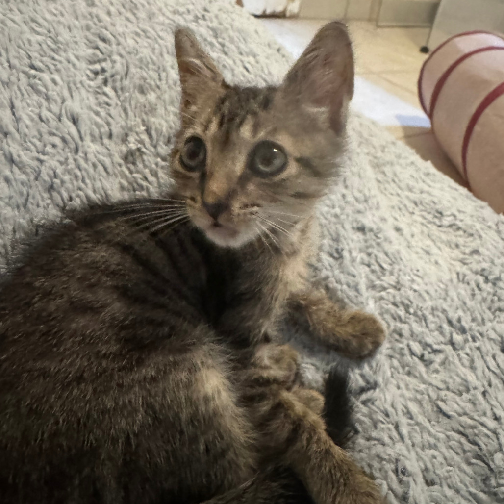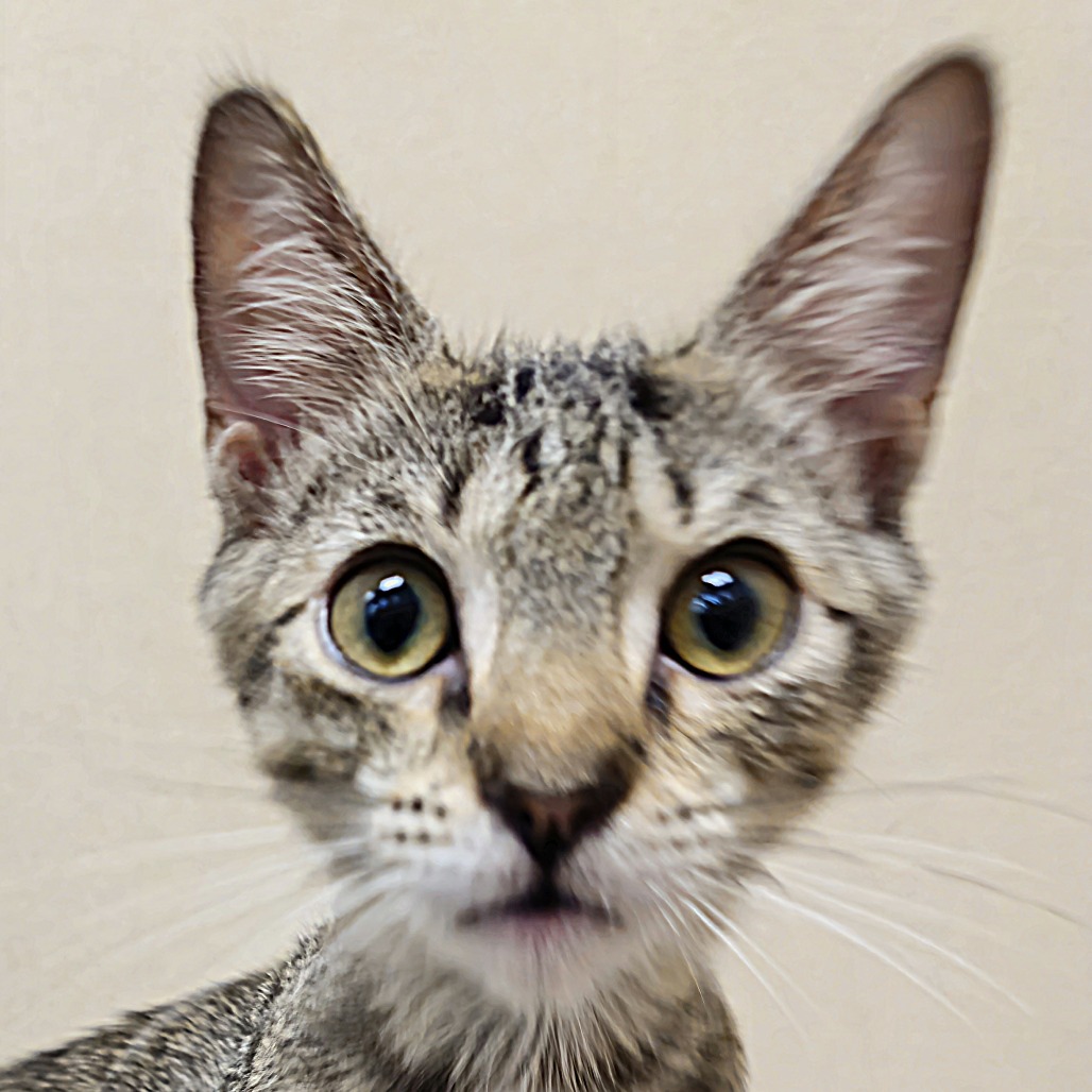 I’m an energetic and affectionate kitten from the Virgin Islands. I love chasing toys, exploring new spaces, and nuzzling up to my visitors. At first, I might be a little shy, but once I get to know you, I’ll be your most loyal and loving companion. With my playful spirit and gentle heart, I’m ready to bring joy, cuddles, and endless fun into your life. to furkids.org/adopt and complete an adoption application. Thanks for considering Furkids Animal Rescue and Shelters!