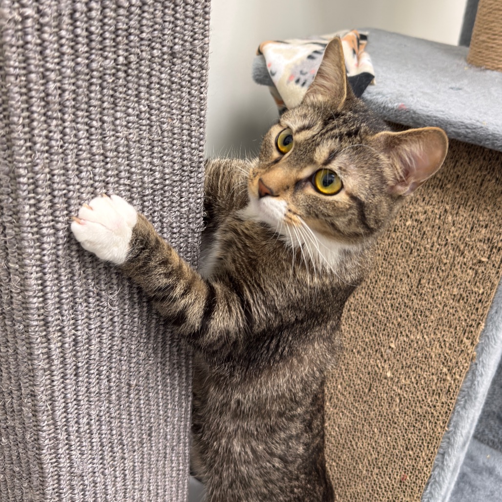 I'm Stormi! I'm a great kitty roommate to my friends here at Furkids. I play well and I adjust to new things pretty quick. I'm a cool girl! I love to nap, play, and eat my favorite snacks.