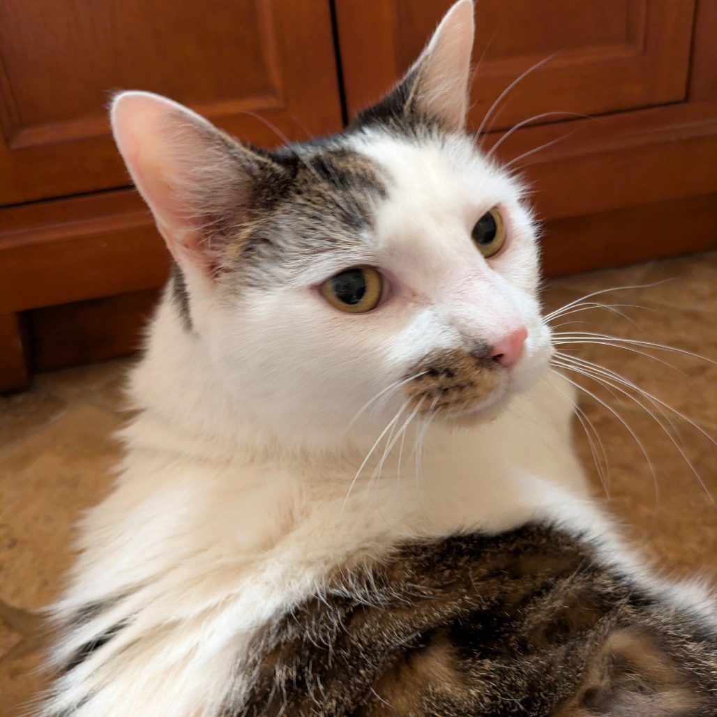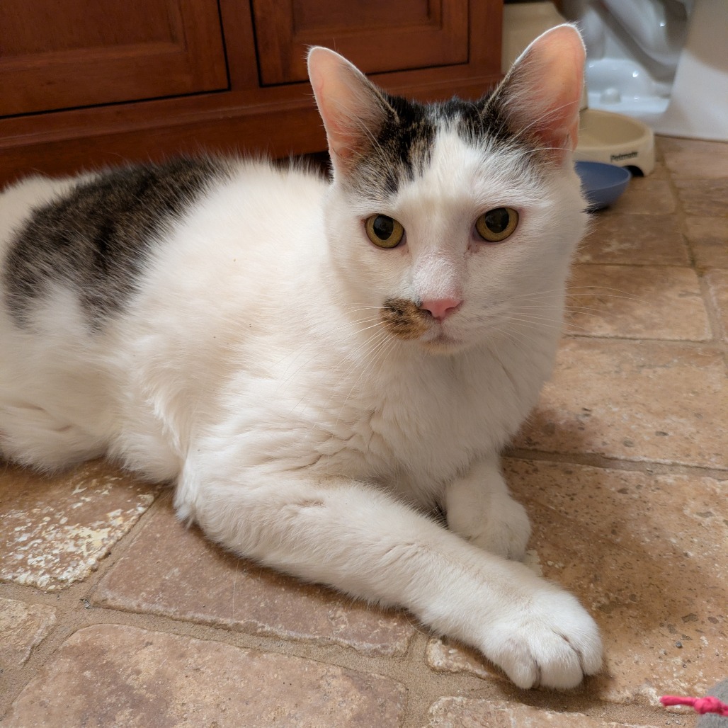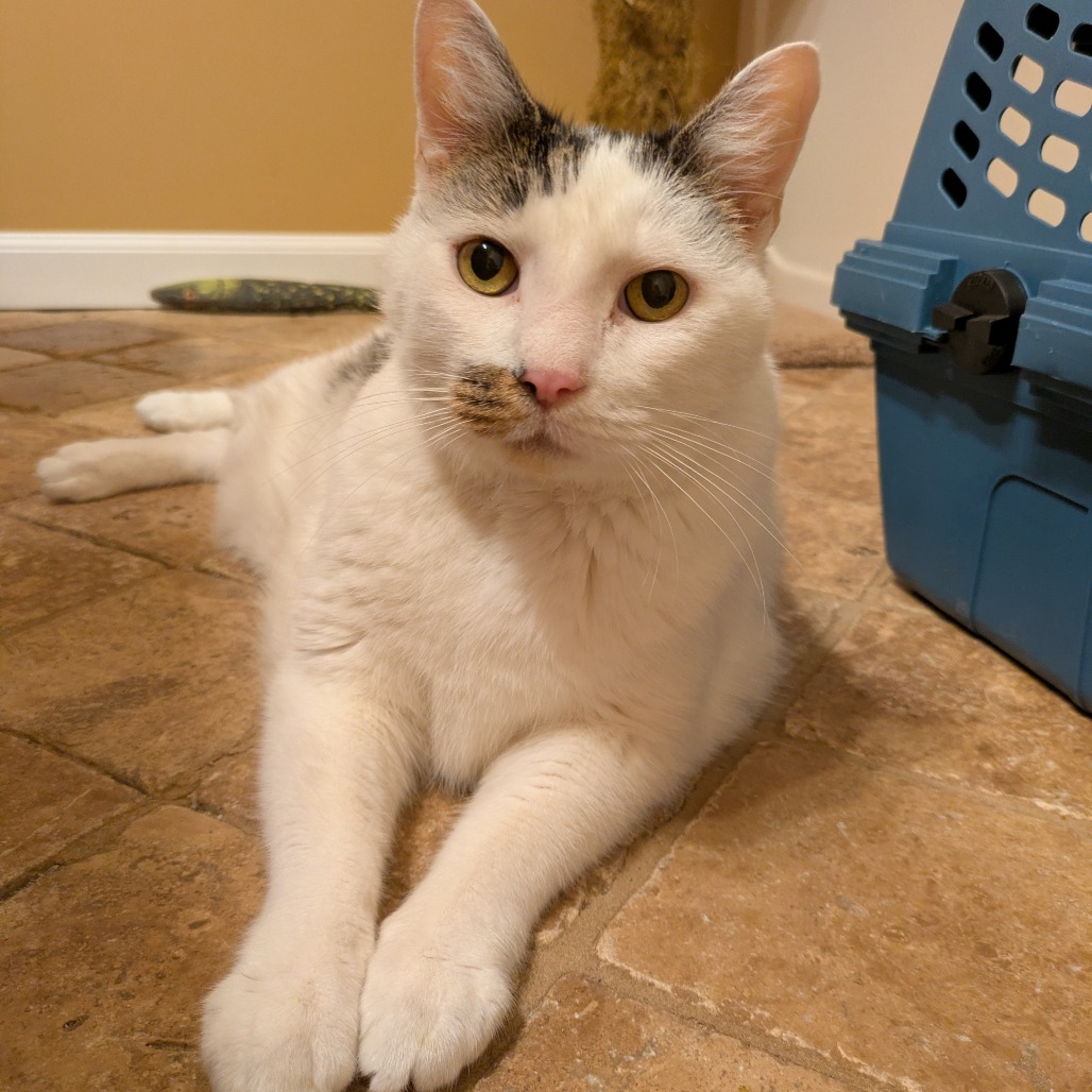 Tash is a big, handsome boy (17 lbs of pure charm!) who loves one-on-one human attention. He’s happiest when he’s lounging in a warm, cozy bed, soaking up affection, or enjoying some crunchy dry food and tasty treats. His loud, happy purr will let you know when he’s content — and if you’re lucky, he might even roll over to show off the adorable tabby patch on his belly! While he’ll politely let you know when something’s not his favorite (like the vacuum or his pet carrier), he’s a sweet and loyal companion once he feels at home.