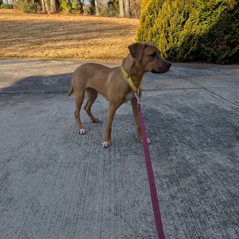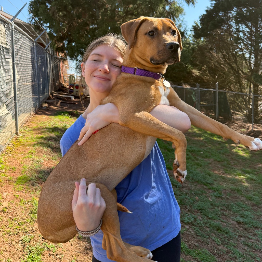 Tayum is in that fun puppy stage where she’s exploring the world, practicing her leash skills, and sharing all the wiggles and love she has. Her breed mix is known for being friendly, athletic, curious, and people-oriented — with high energy, strong scent-tracking instincts, and a natural love for outdoor adventures. A secure yard and supervised outside time will help keep her nose from leading the way too far.