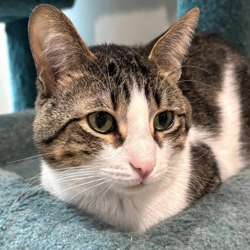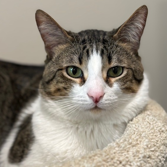 Tim is an adorable 2-year-old brown tabby with a long, lean build and a heart full of sweetness. While we don’t know much about his past, it didn’t take long for his true personality to shine. From his very first day in the shelter room, Tim showed off his confidence by exploring his surroundings, racing around happily, and especially enjoying zooming through the play tunnel.